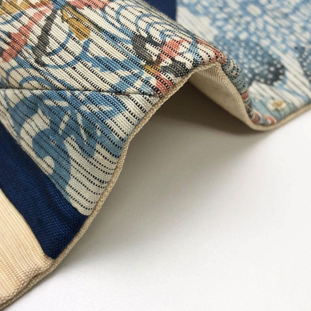 名古屋帯 紬 切嵌 型染 花模様 生成色 O-5143 着物 きもの kimono 和服 和装 中古 リサイクル着物 【送料無料】