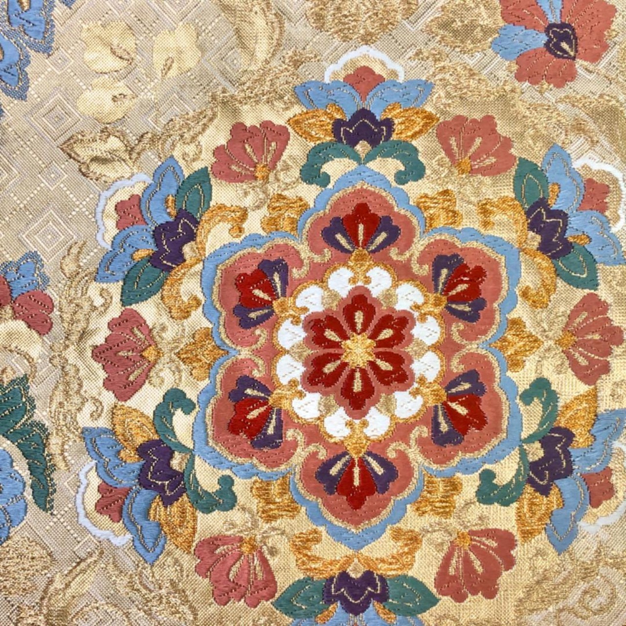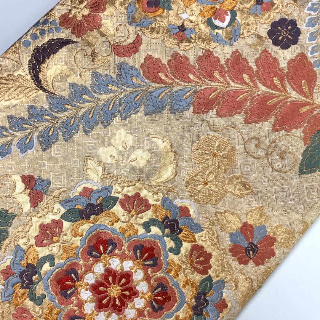 金色ベースのお色味に美しい華柄模様がデザインされた煌びやかで素敵なお品でございます。
