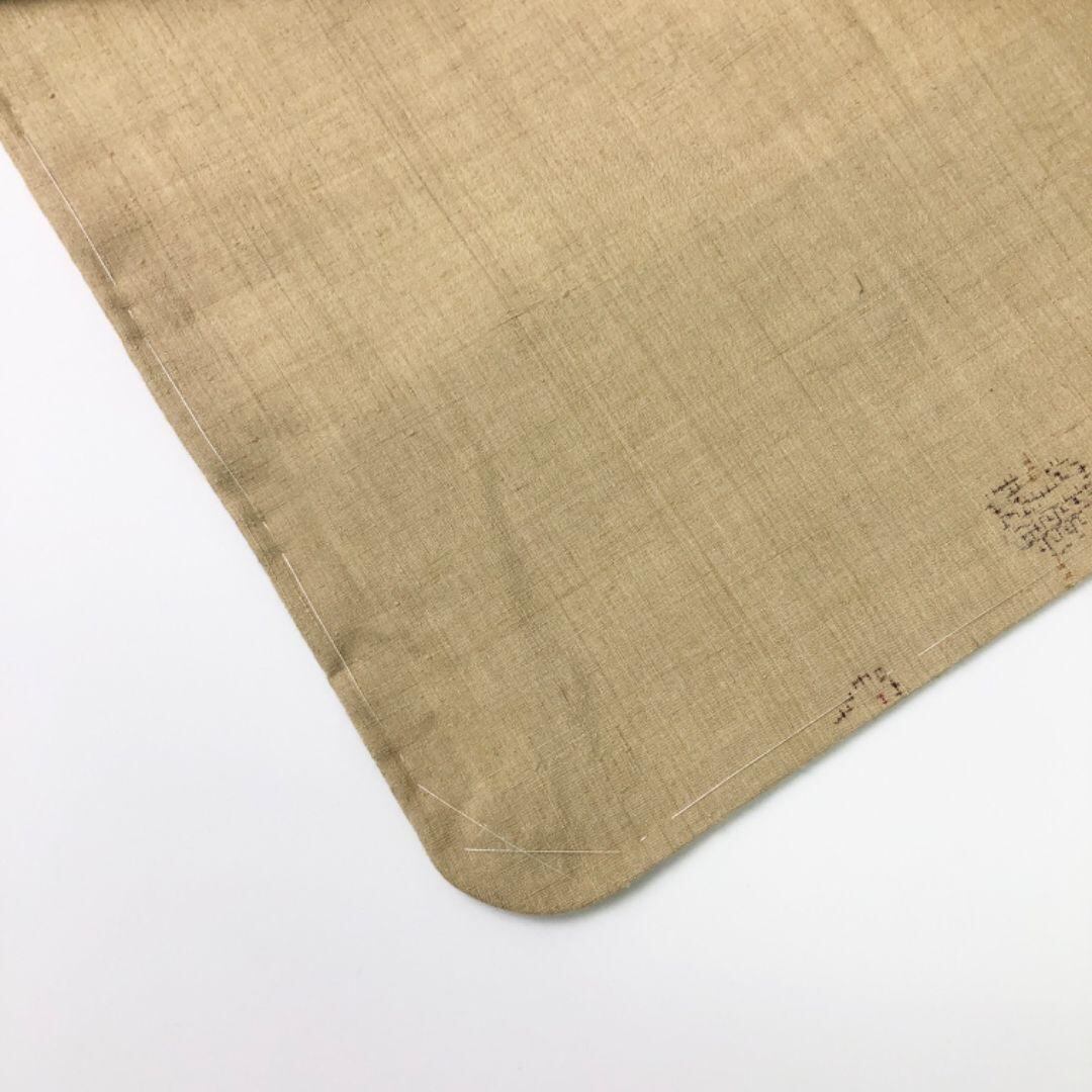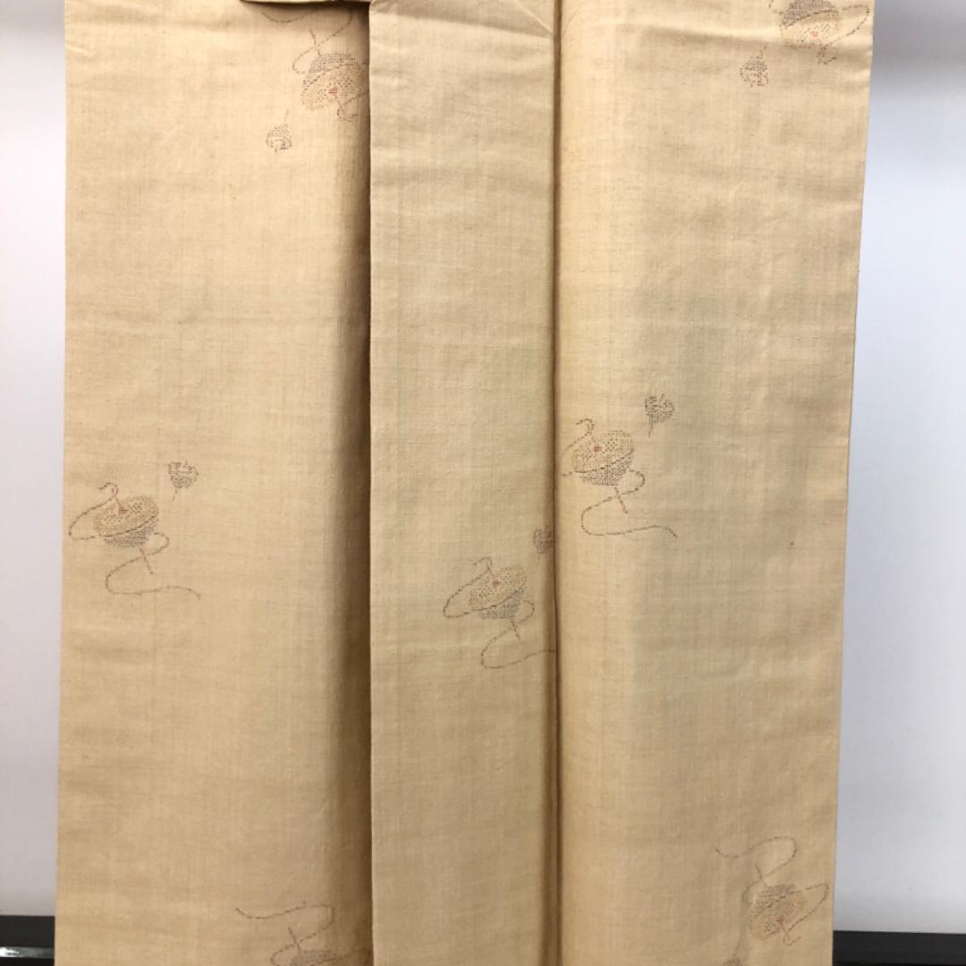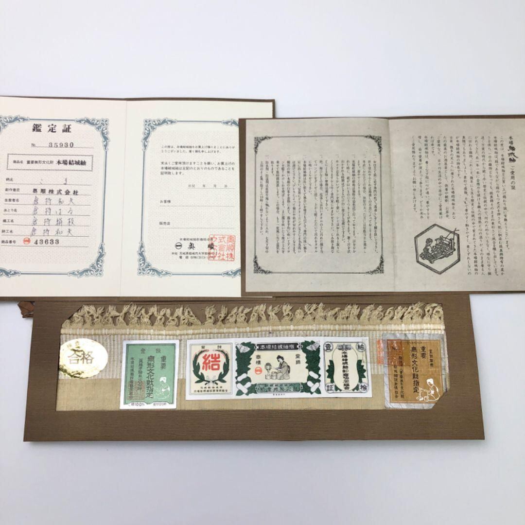 本場結城紬 100亀甲 奥順 証紙付 独楽柄 枯野色 しつけ糸 K-4899 着物 きもの kimono 和服 和装 中古 リサイクル着物 【送料無料】