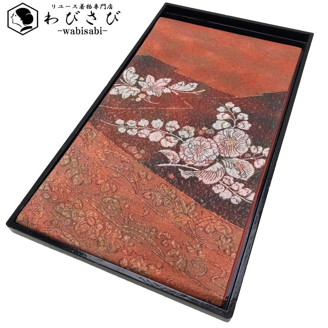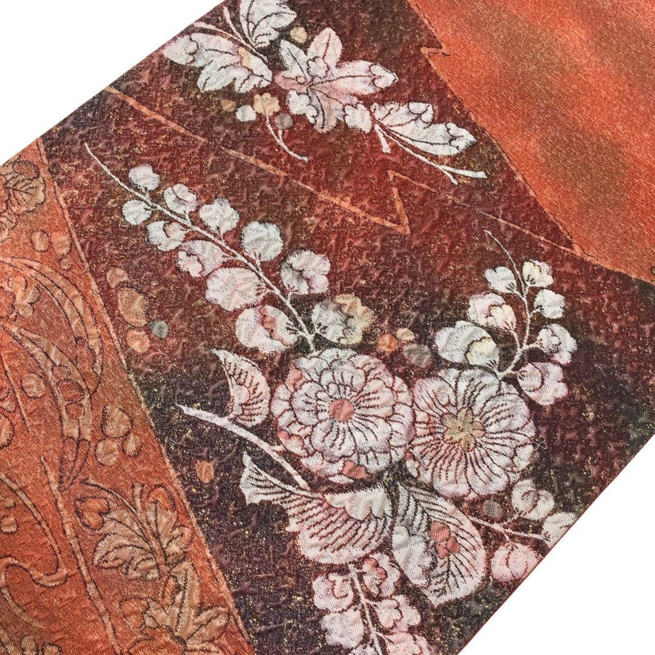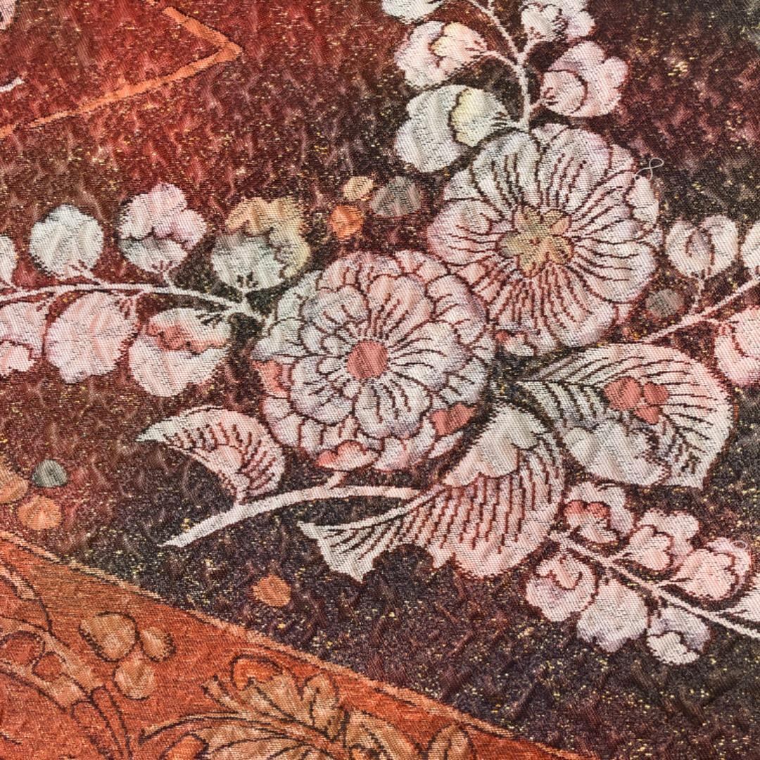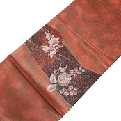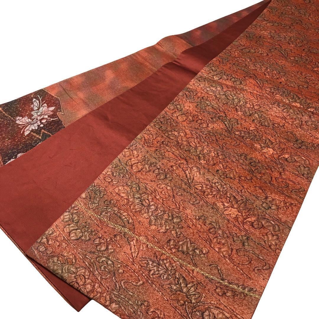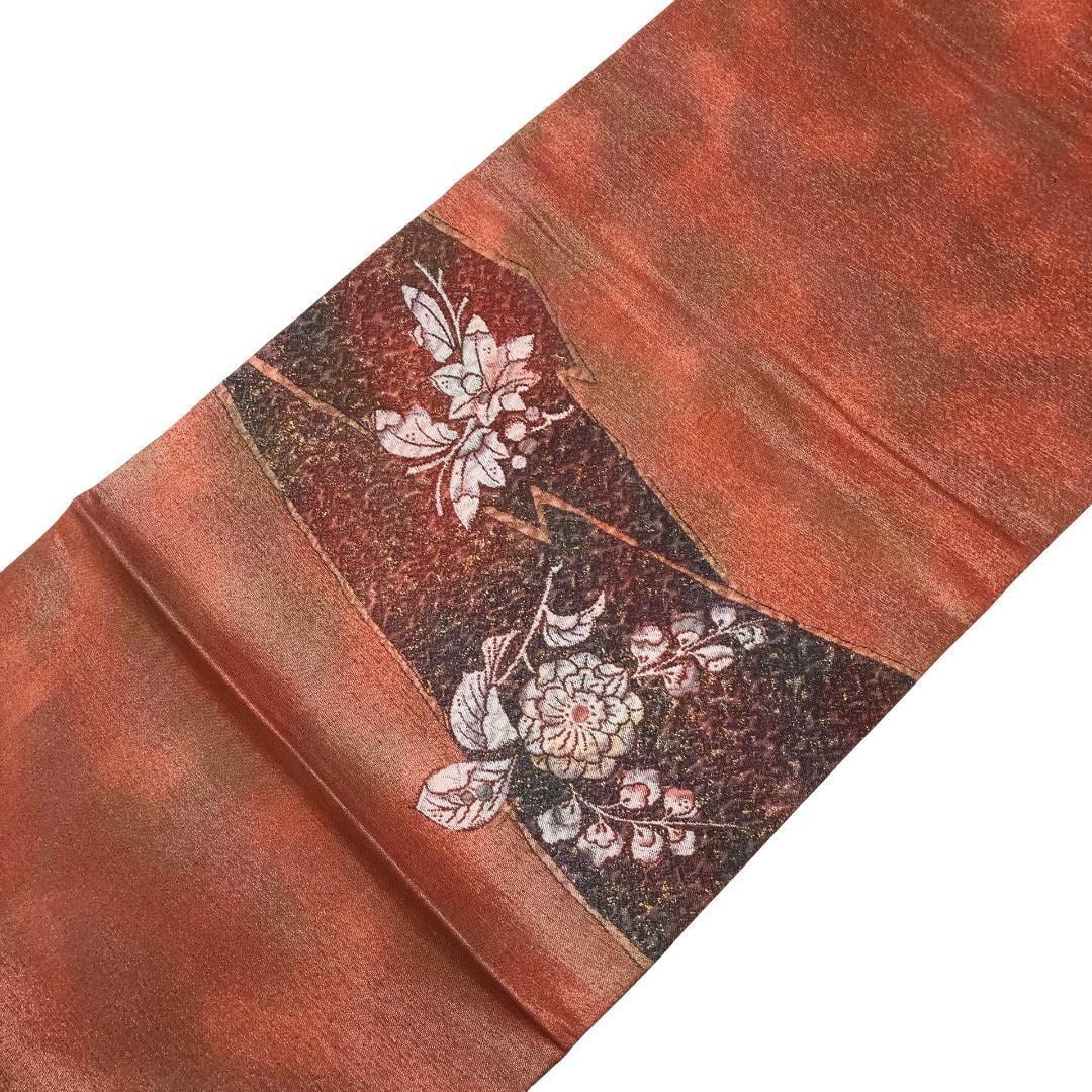 照柿色ベースのお色味に辻が花模様がデザインされた雰囲気の良い素敵な柄裄のお品でございます。