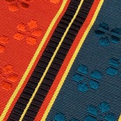 緋色ベースの三色のお色味に縦縞小花模様がデザインされた素敵な柄裄のお品でございます。