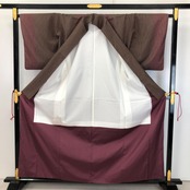 落栗色、紅海老茶色ベースのグラデーションのお色味に絞り柄がデザインされた雰囲気の良い素敵なお品でございます。