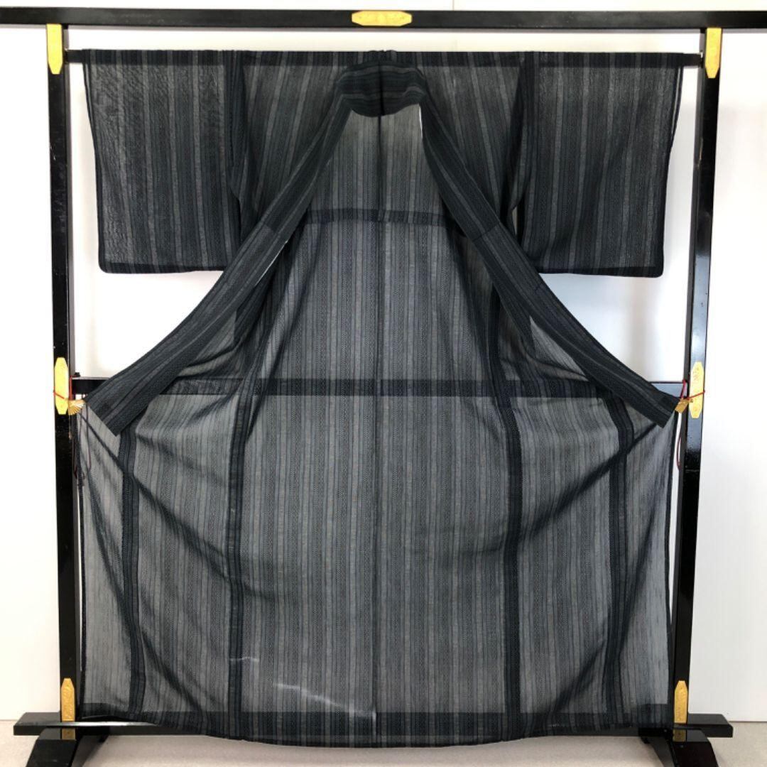 夏着物 小紋 縦縞模様 黒色 K-4867 着物 きもの kimono 和服 和装 中古 リサイクル着物 【送料無料】
