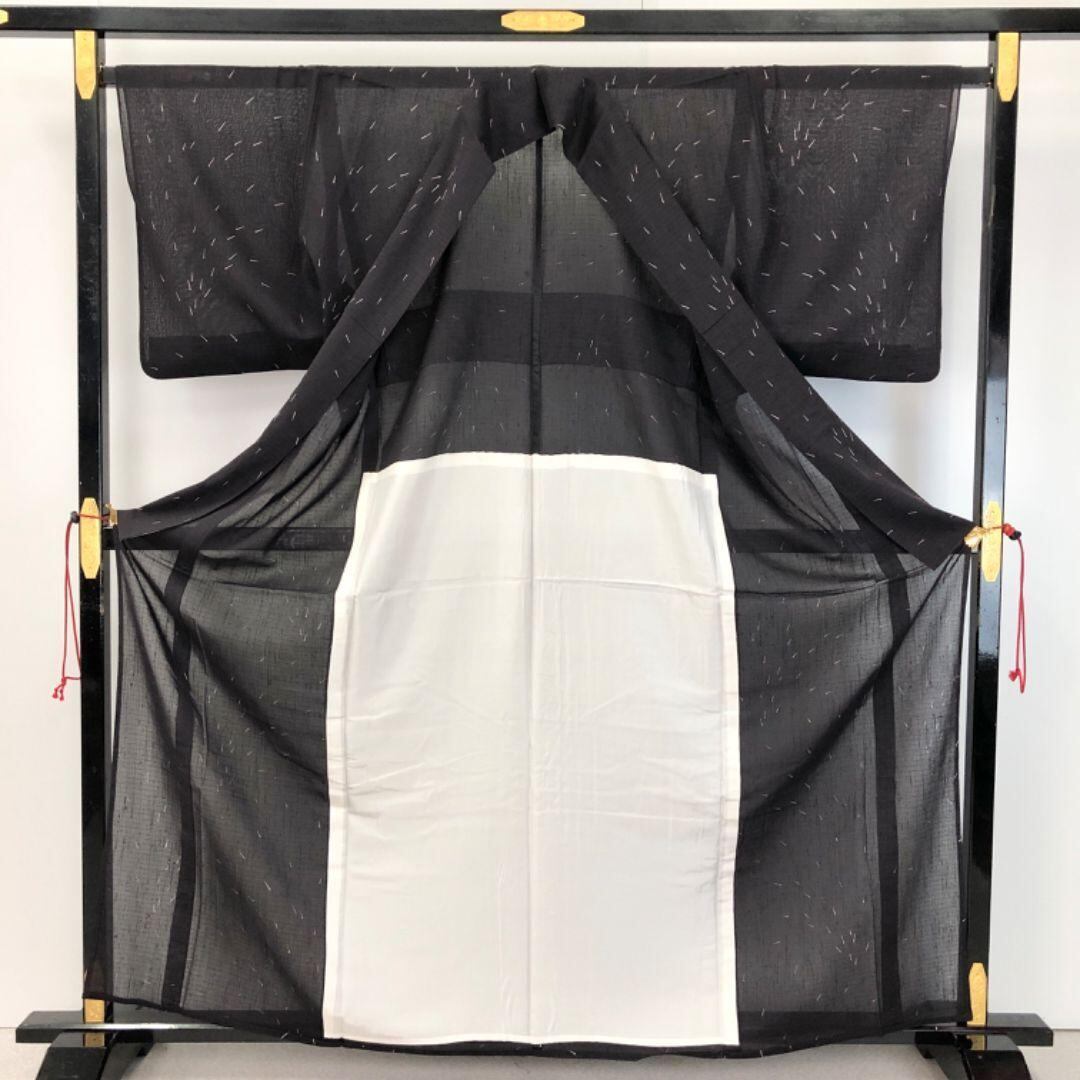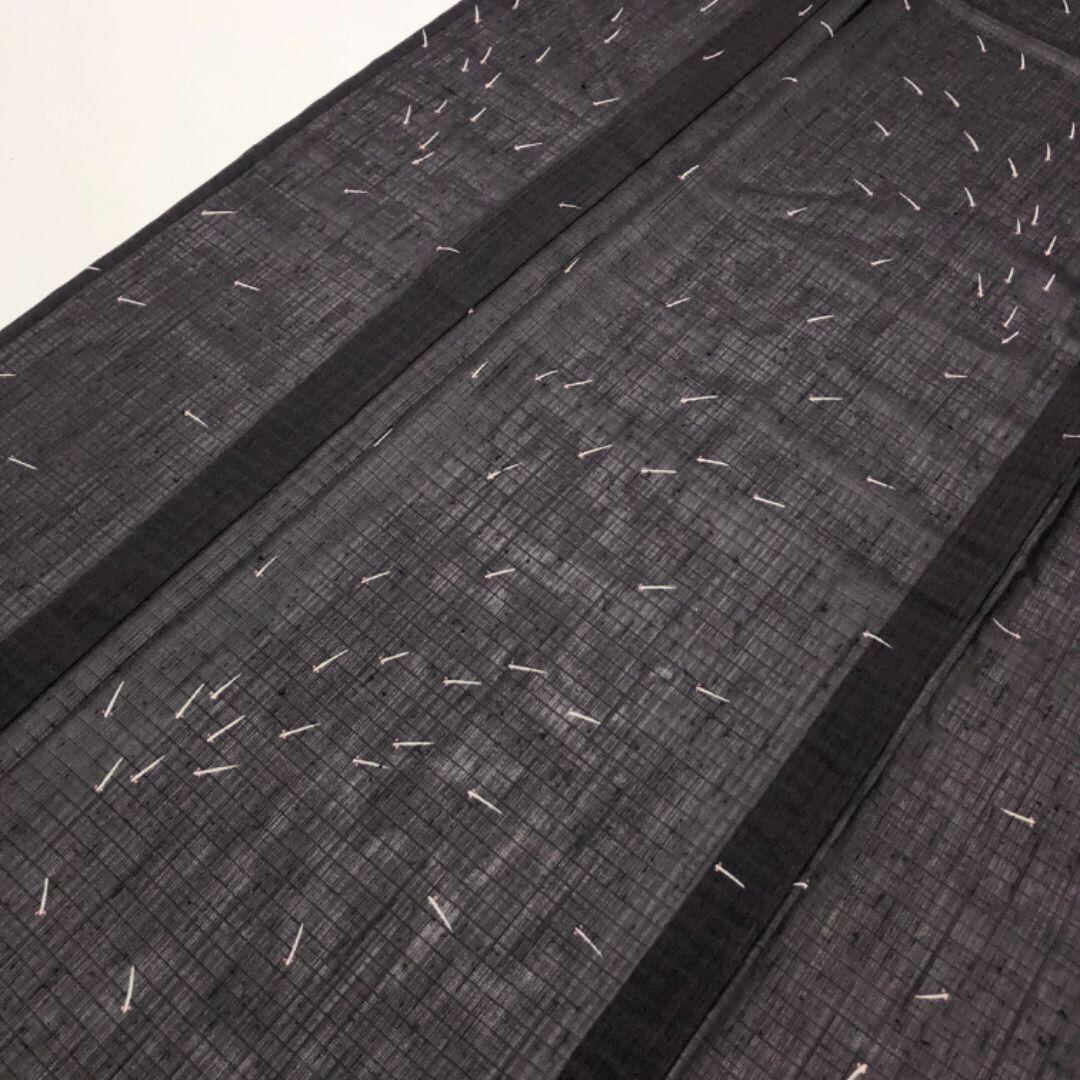 夏着物 紗紬 めだか 鶴の黒羽色 ガード加工 K-4865 着物 きもの kimono 和服 和装 中古 リサイクル着物 【送料無料】