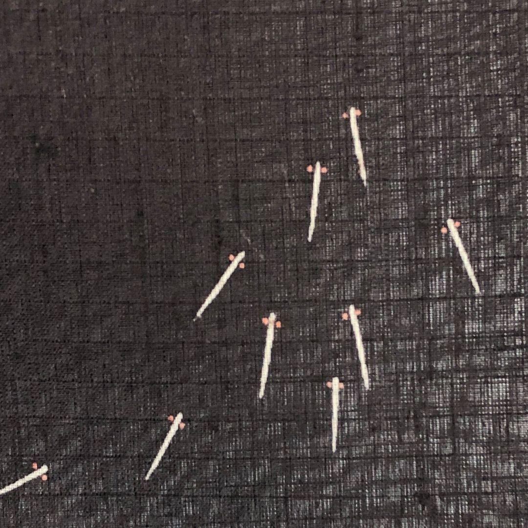 鶴の黒羽色ベースの黒味の雰囲気の良いお色味にめだかの涼しげで風流な柄裄がデザインされた素敵なお品でございます。