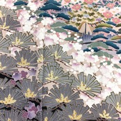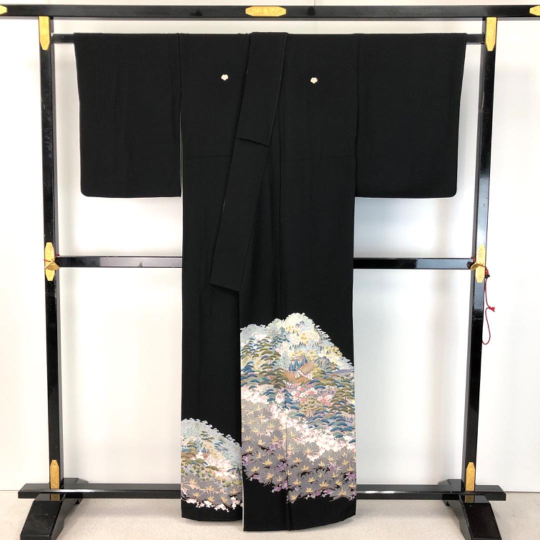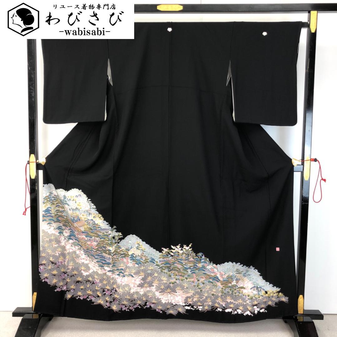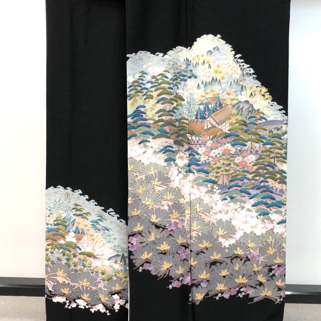 松竹梅に花模様、美しい風景がデザインされた素敵な柄裄のお品でございます。