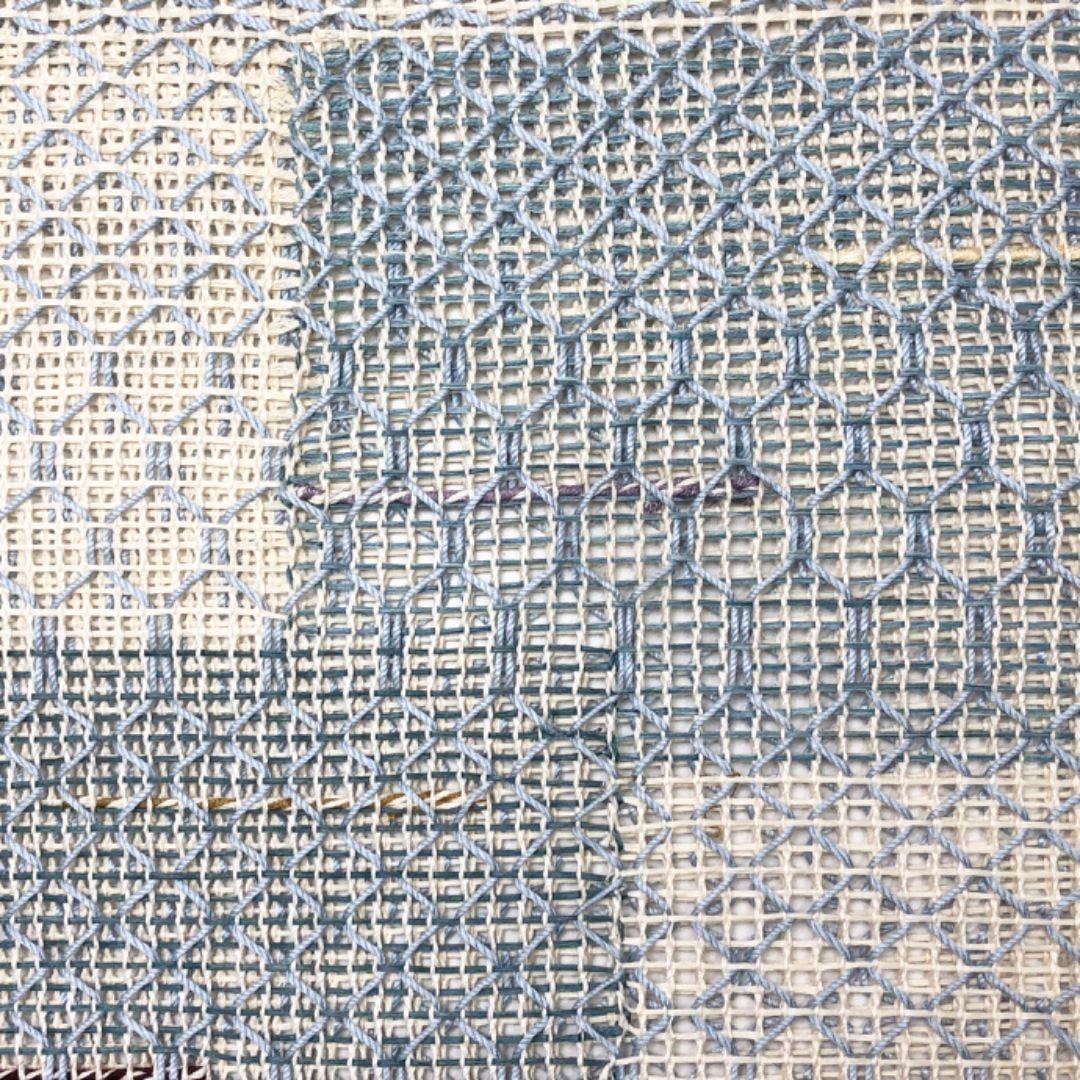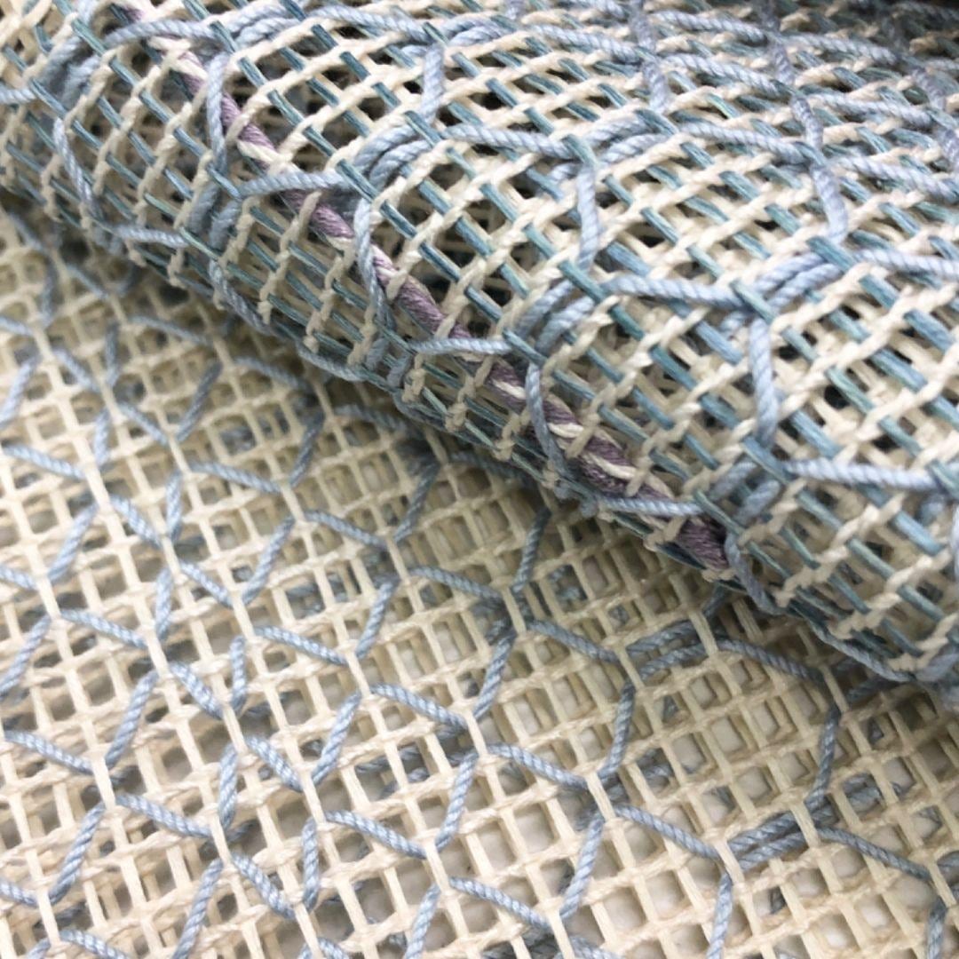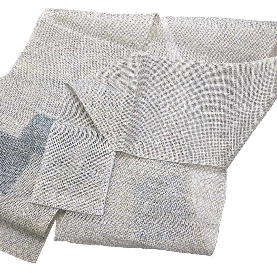 乳白色ベースのお色味に透け感のある雰囲気の良い織模様、四角柄がデザインされた素敵なお品でございます。