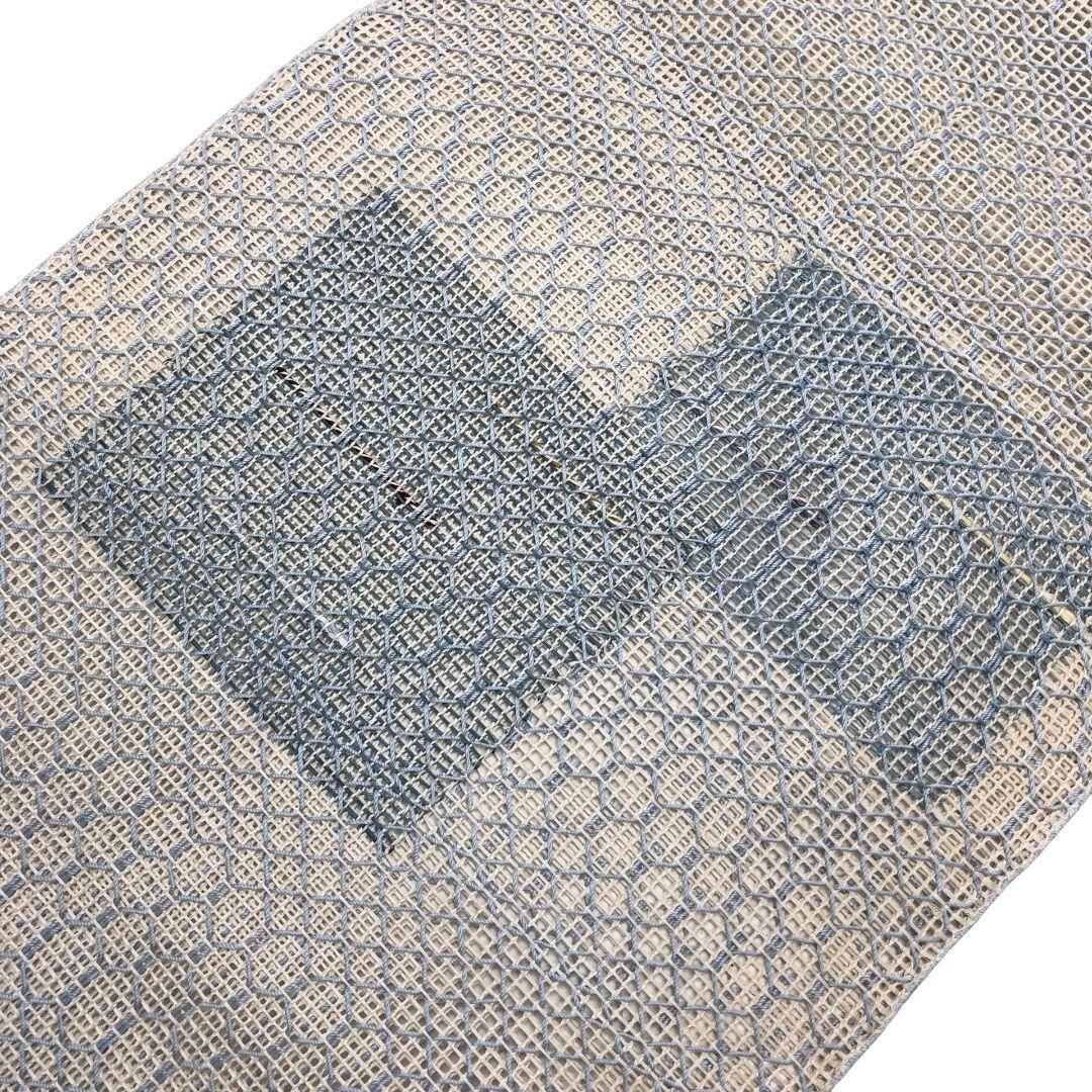 夏帯 名古屋帯 羅 四角柄 乳白色 O-5184 着物 きもの kimono 和服 和装 中古 リサイクル着物 【送料無料】