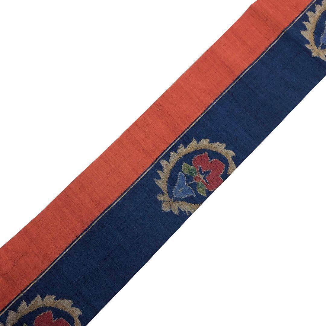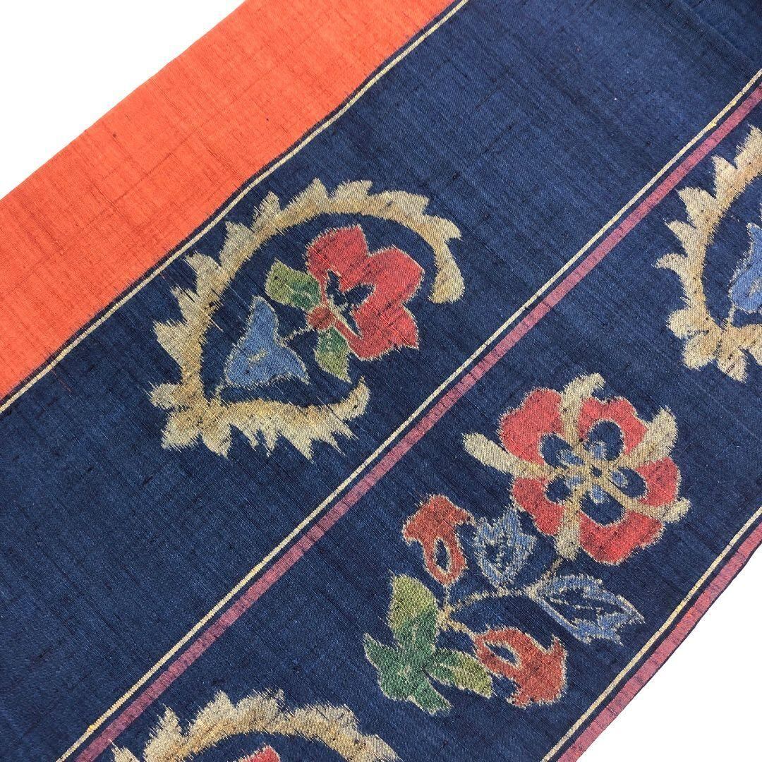 名古屋帯 紬 総柄抽象花模様 藍色 O-5180 着物 きもの kimono 和服 和装 中古 リサイクル着物 【送料無料】