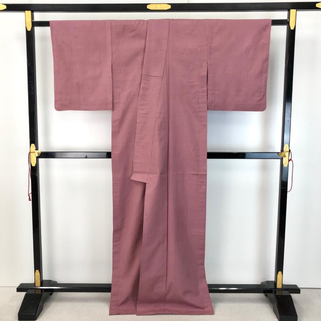 積紅色の落ち着いたお色味の紬地の雰囲気の良い素敵なお品でございます。
