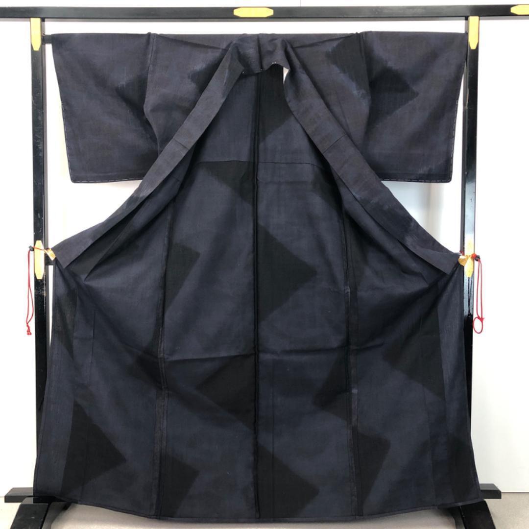 単衣 紬 モダンな染柄模様 褐色 トールサイズ K-4909 着物 きもの kimono 和服 和装 中古 リサイクル着物 【送料無料】
