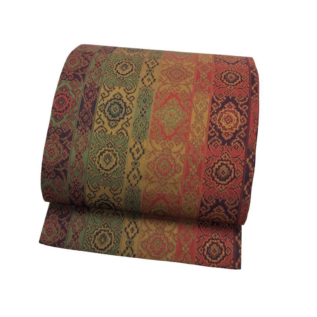 袋帯 西陣 小池織物 証紙付 縦柄抽象華柄模様 O-5179 着物 きもの kimono 和服 和装 中古 リサイクル着物 【送料無料】