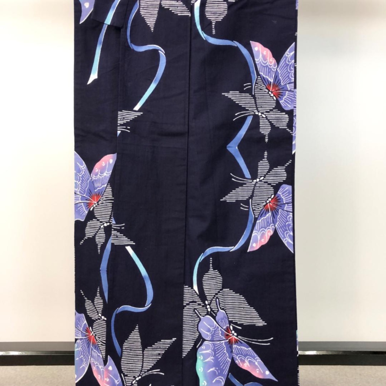 夏着物 浴衣 美しい蝶々 緋紺色 K-4891 着物 きもの kimono 和服 和装 中古 リサイクル着物 【送料無料】