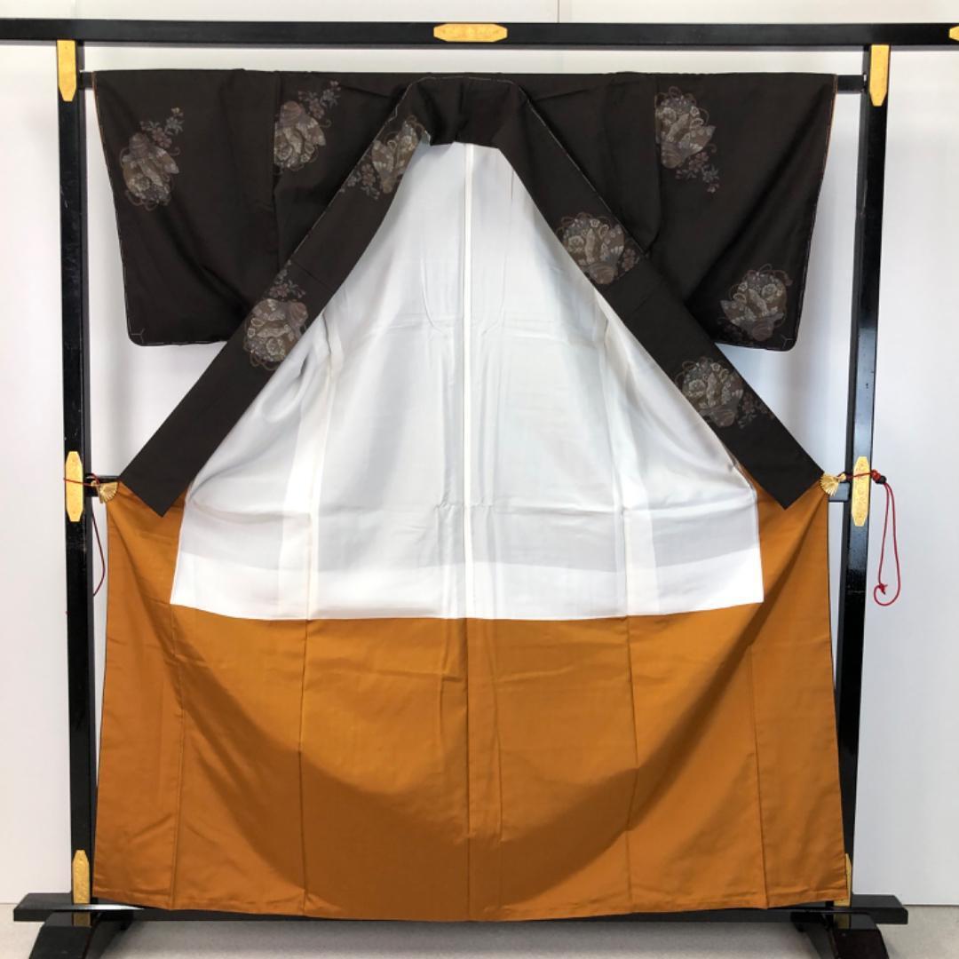 純泥染めの雰囲気の良いお色味、蝶々に花模様の柄裄がデザインされた素敵なお品でございます。