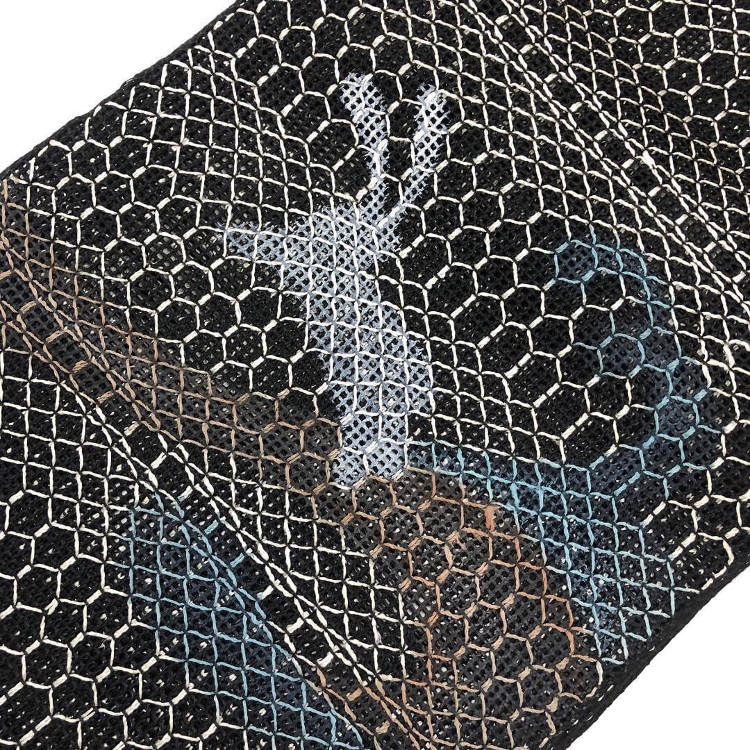 黒色ベースのお色味に透け感のある織模様、かわいいうさぎの柄裄がデザインされた素敵なお品でございます。