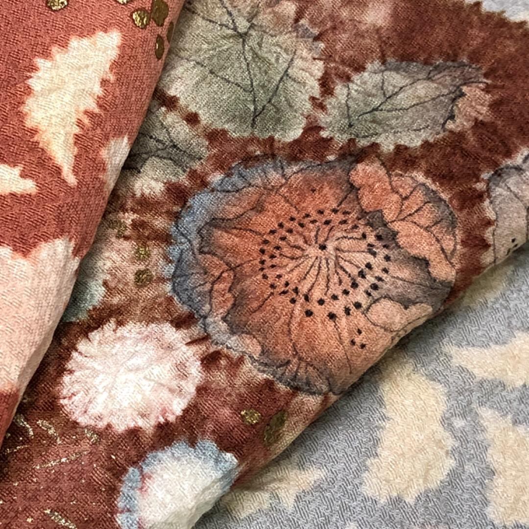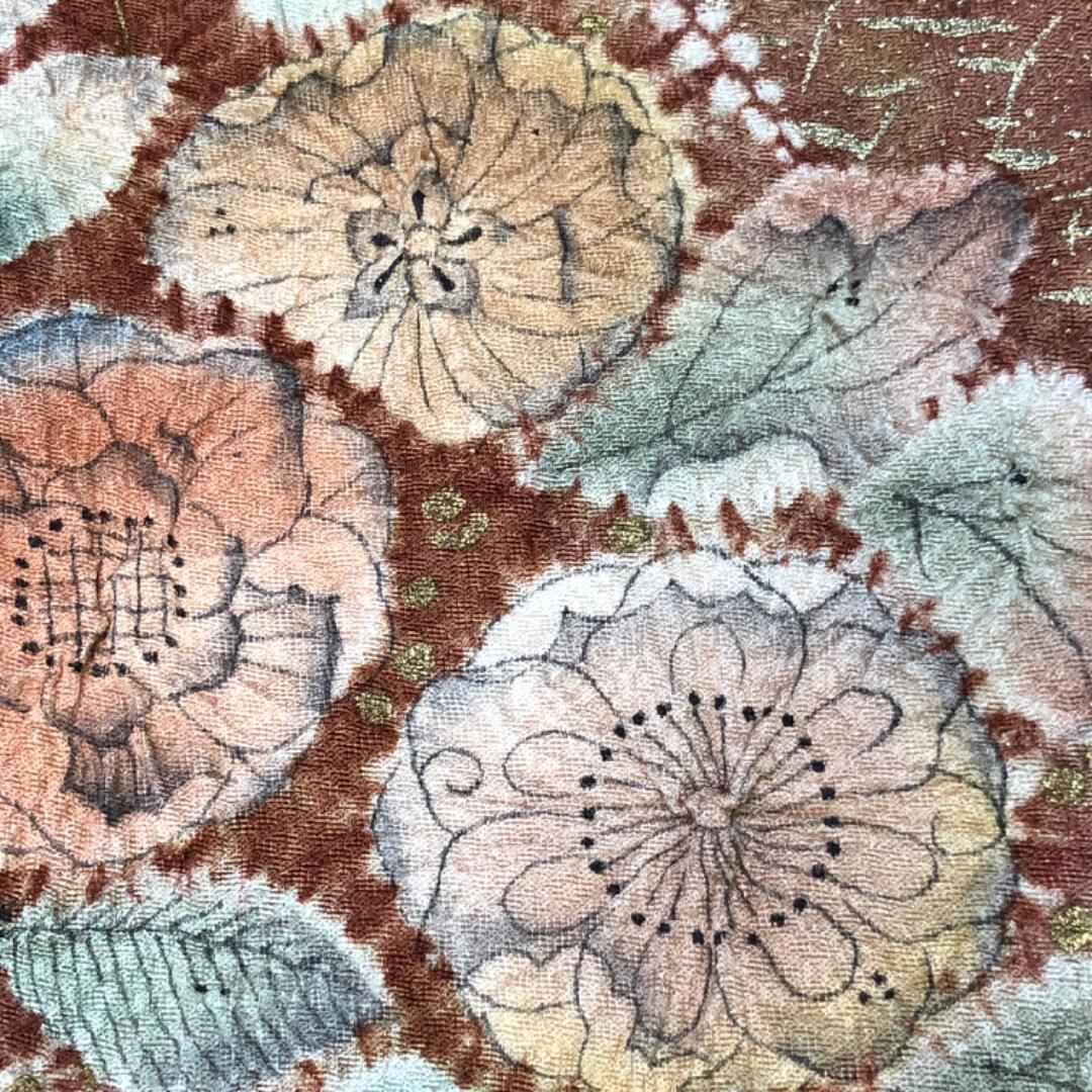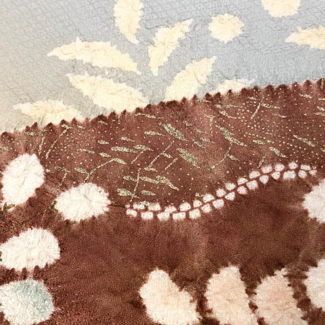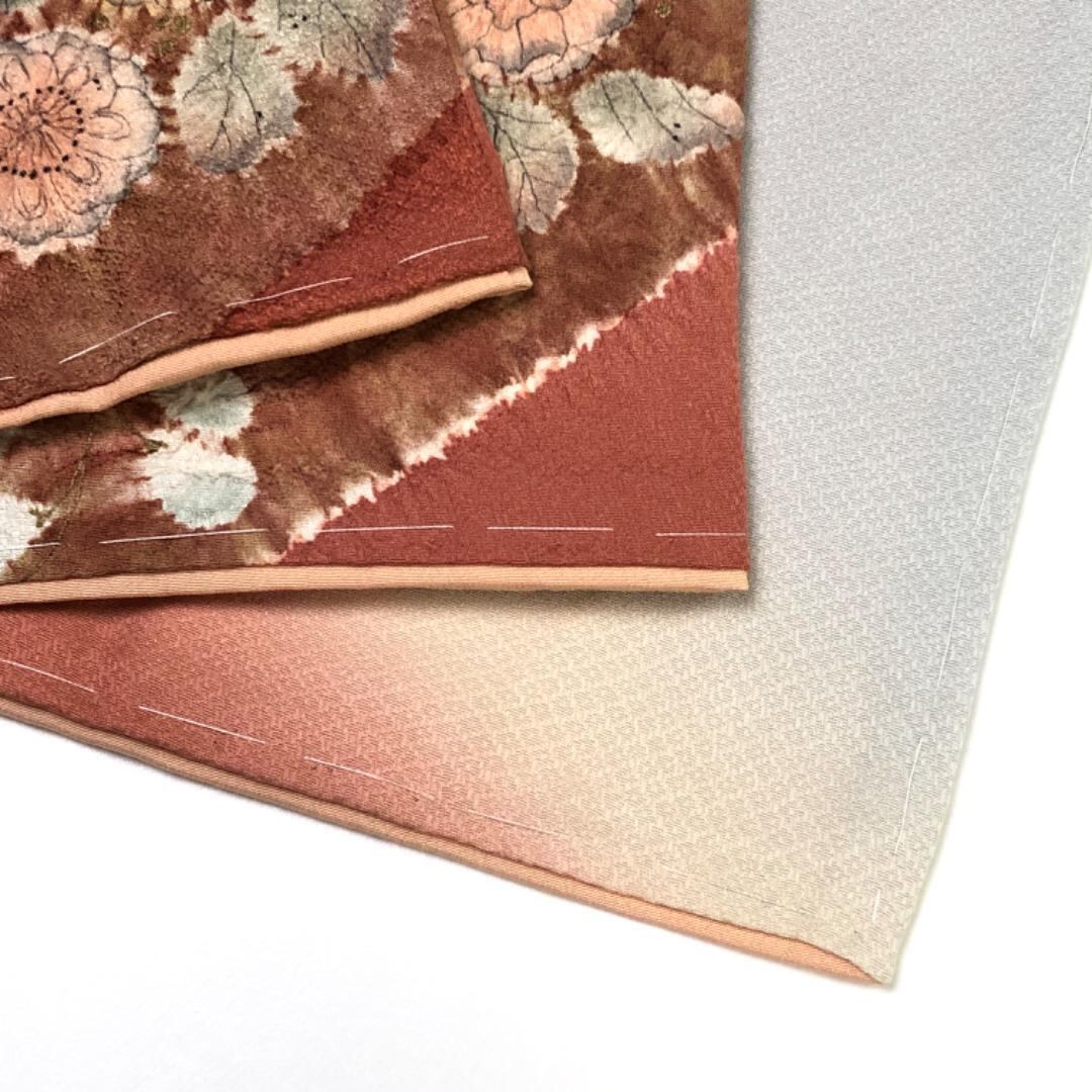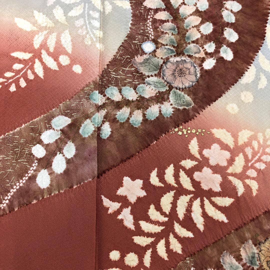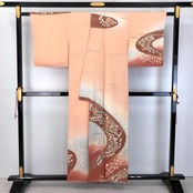 鮭色のお色味に美しい辻が花絞りがデザインされた雰囲気の良い素敵な柄裄のお品でございます。