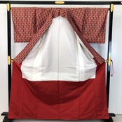 弁柄色のお色味に雰囲気の良い琉球絣の柄裄がデザインされた素敵なお品でございます。
