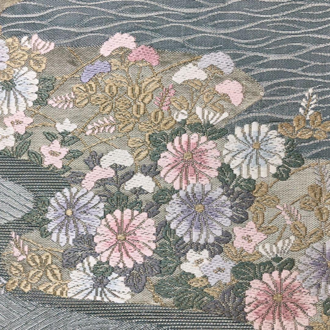 夏帯 袋帯 紗 流水に花模様 千種色 O-5192 着物 きもの kimono 和服 和装 中古 リサイクル着物 【送料無料】