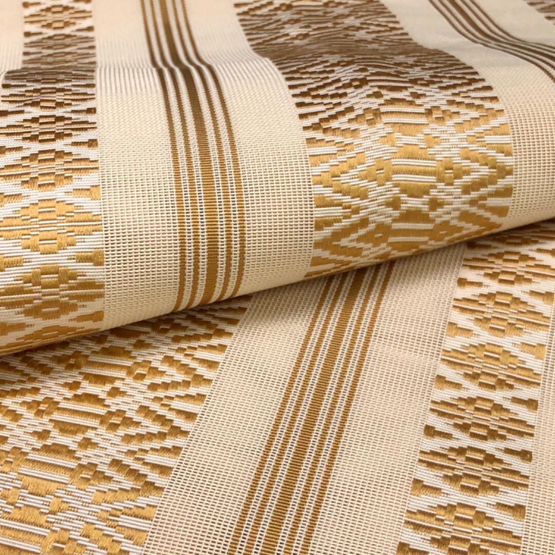 東京白茶色の品のあるお色味、紗献上の柄行がデザインされた雰囲気の良い素敵なお品でございます。