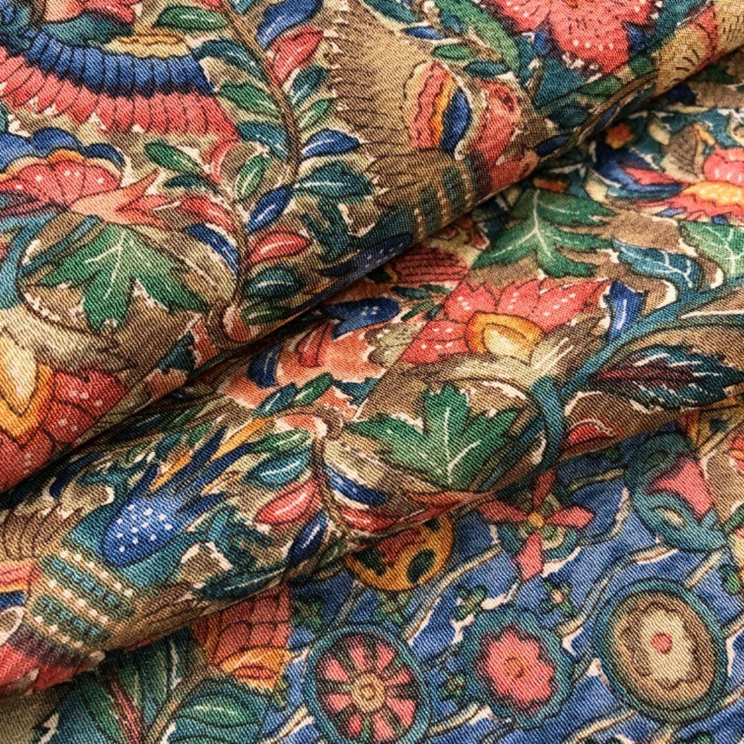 桑染色ベースのお色味の縮緬地に花更紗模様の柄裄がデザインされた素敵なお品でございます。