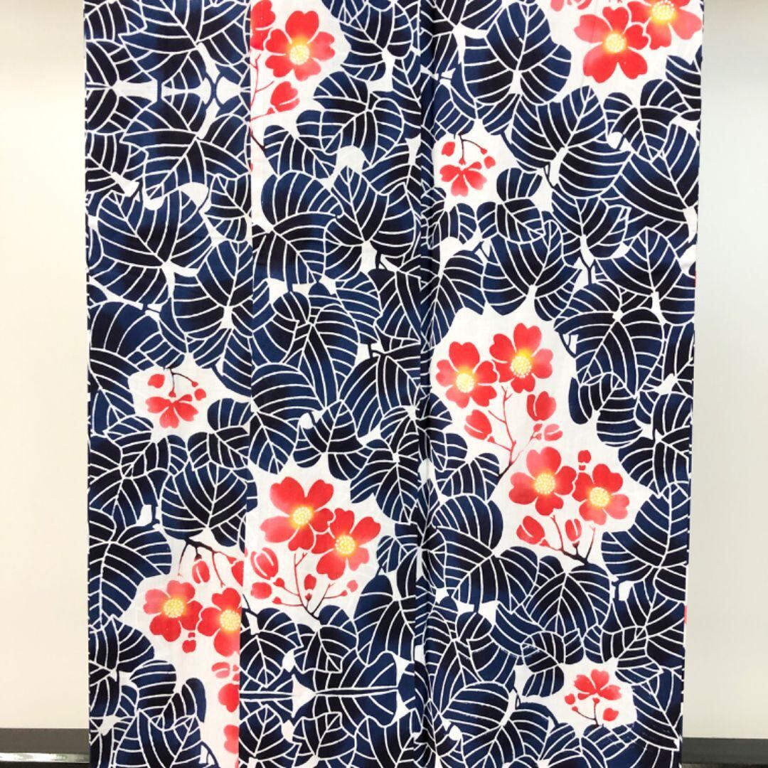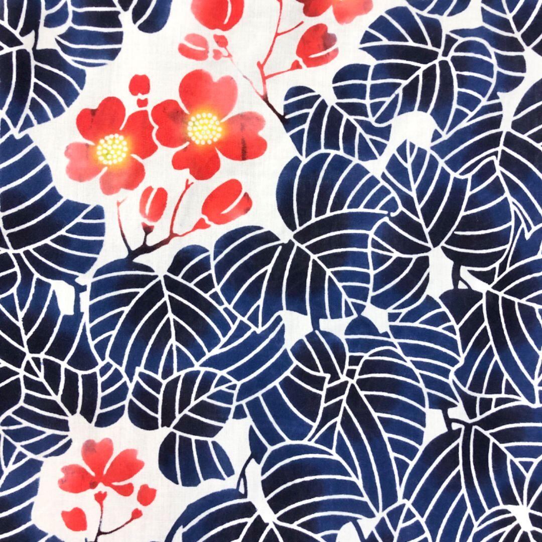 紺青色のお色味に花柄に葉模様の柄裄がデザインされた雰囲気の良い素敵なお品でございます。