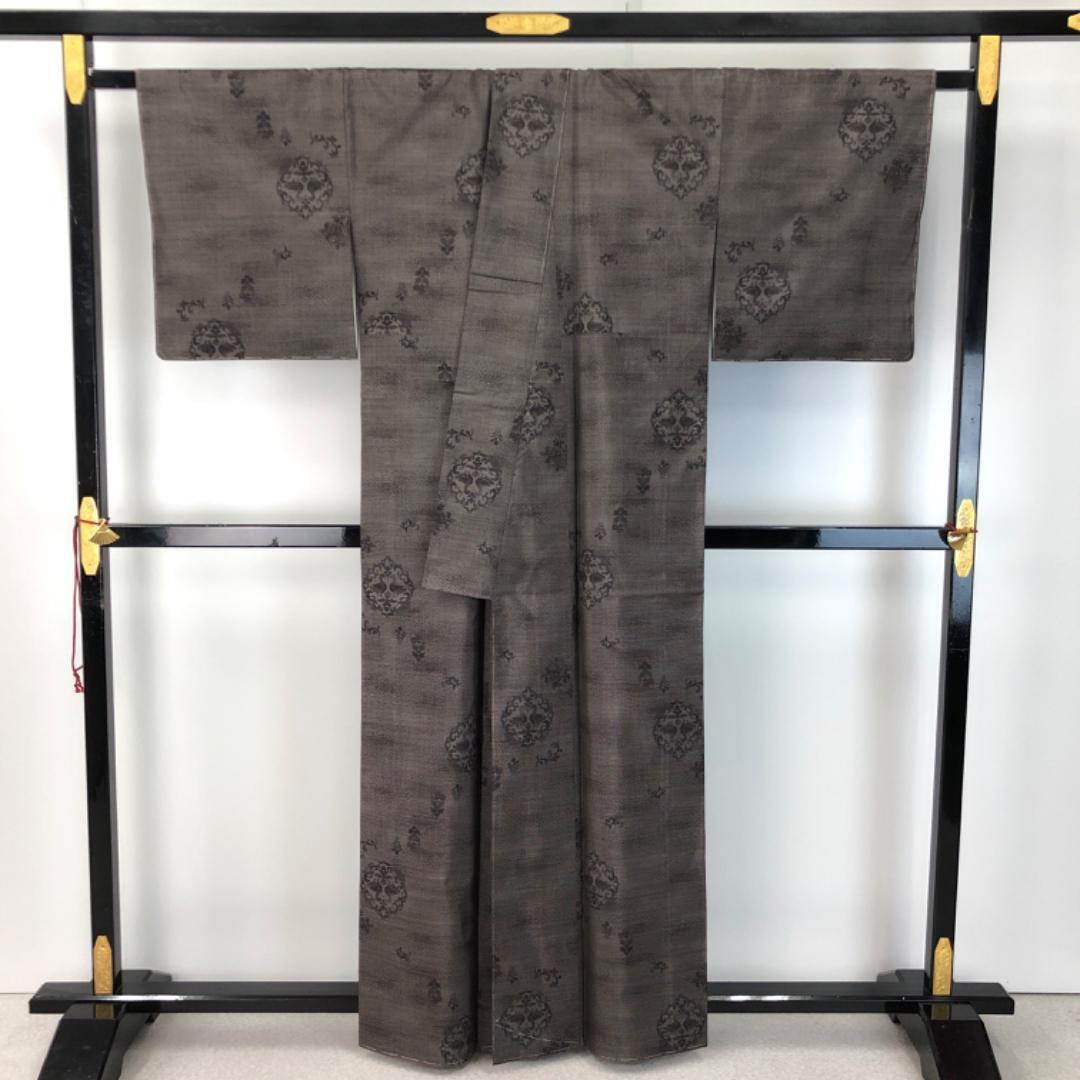 茶泥染の雰囲気の良いお色味、向かい鳥、花柄模様がデザインされた素敵なお品でございます。