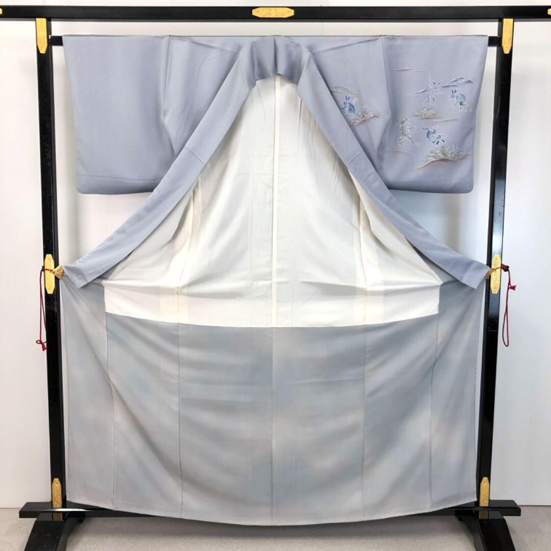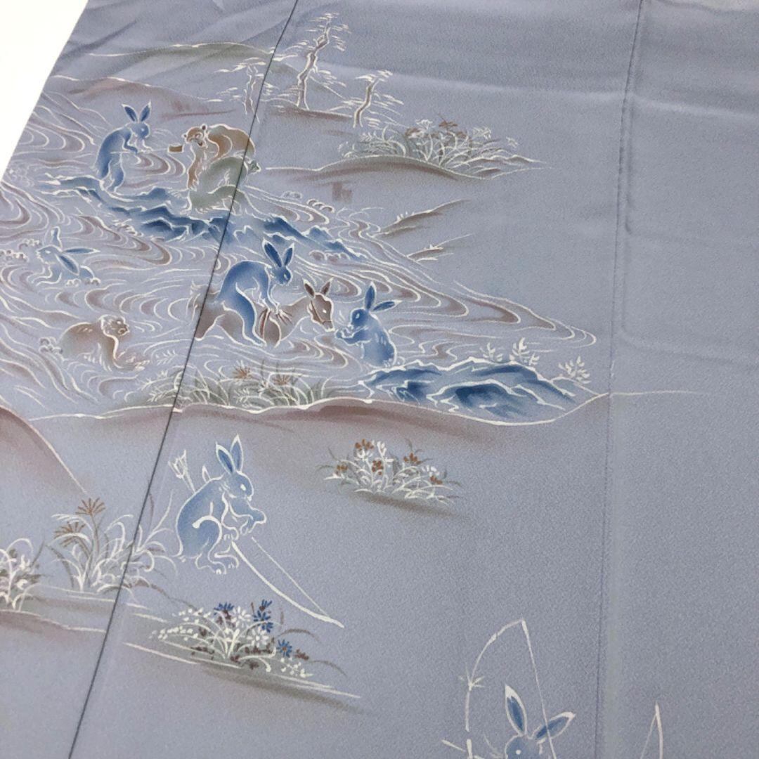 付下げ 作家物 鳥獣戯画 流水 蒼白色 K-4923 着物 きもの kimono 和服 和装 中古 リサイクル着物 【送料無料】