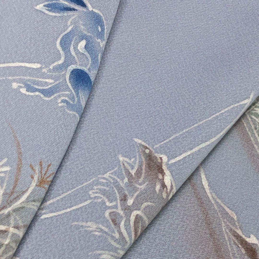 蒼白色に上品なお色味に鳥獣戯画の柄行がデザインされた雰囲気の良い素敵なお品でございます。