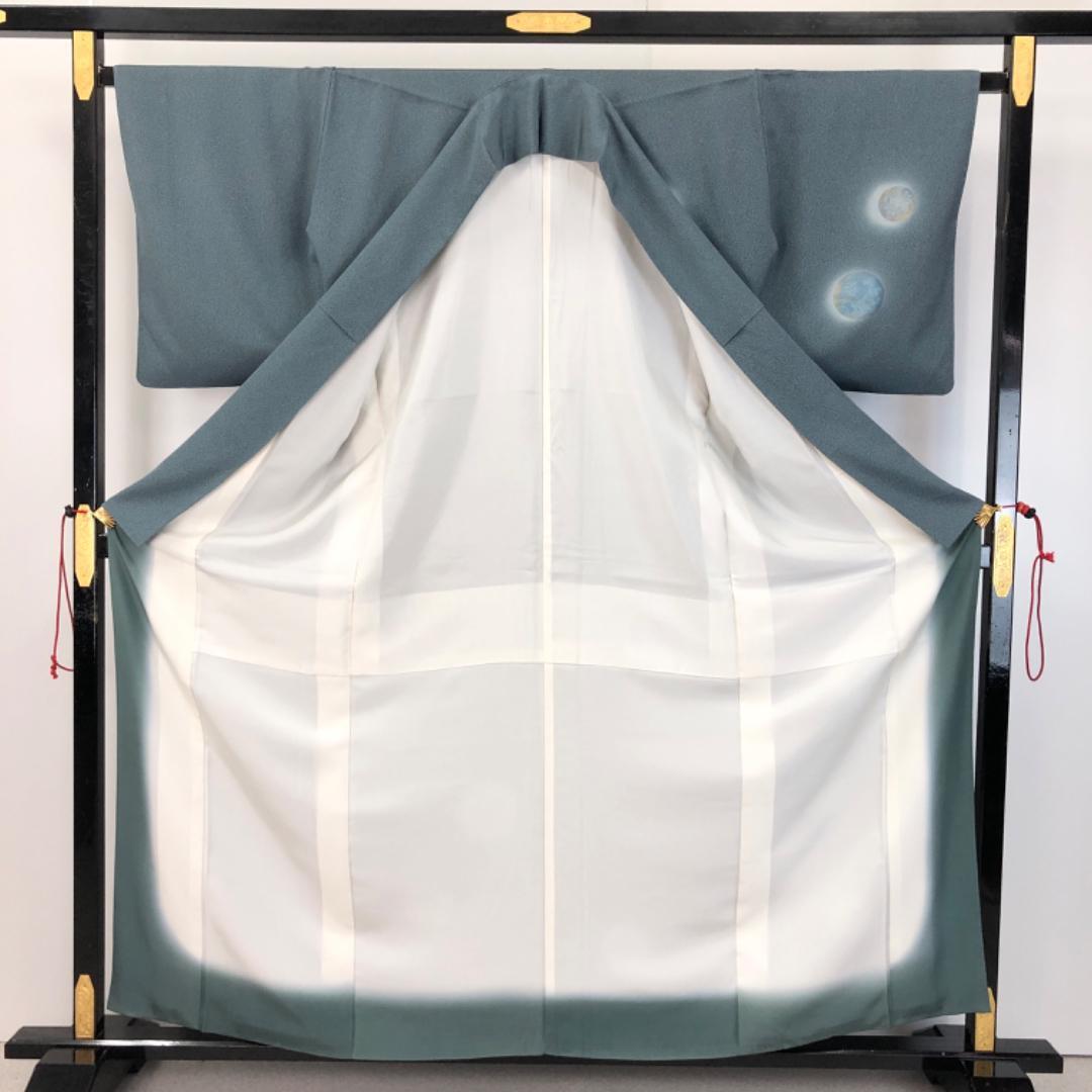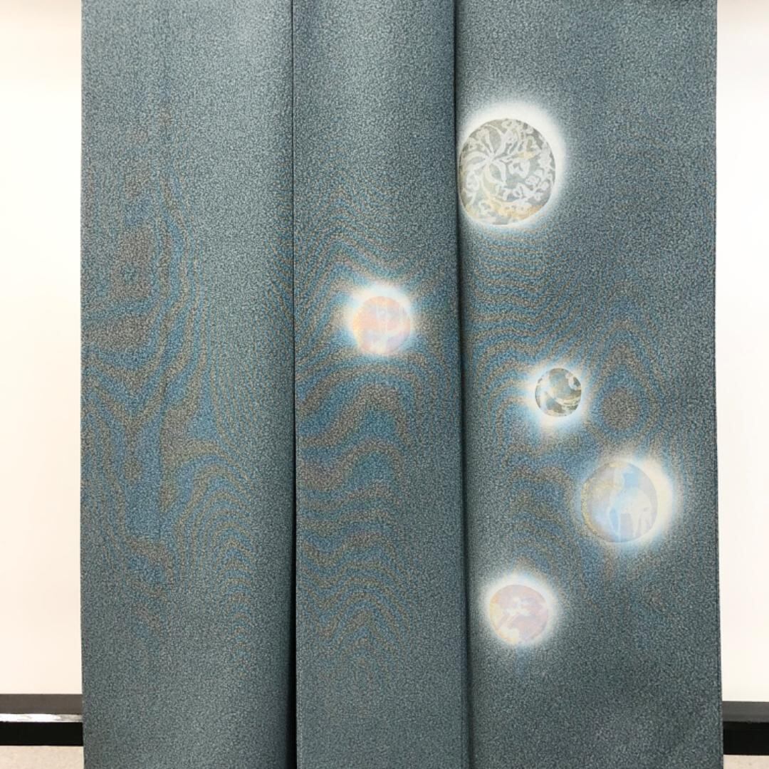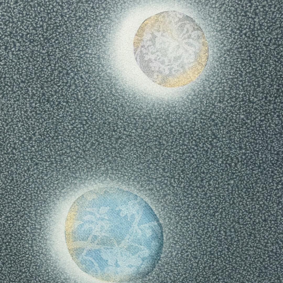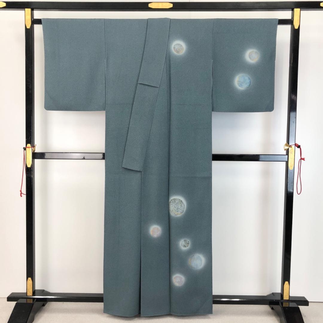 沈香茶色の品のあるお色味に叩き染、丸暈しに花模様、動物などの柄行がデザインされた雰囲気の良い素敵なお品でございます。