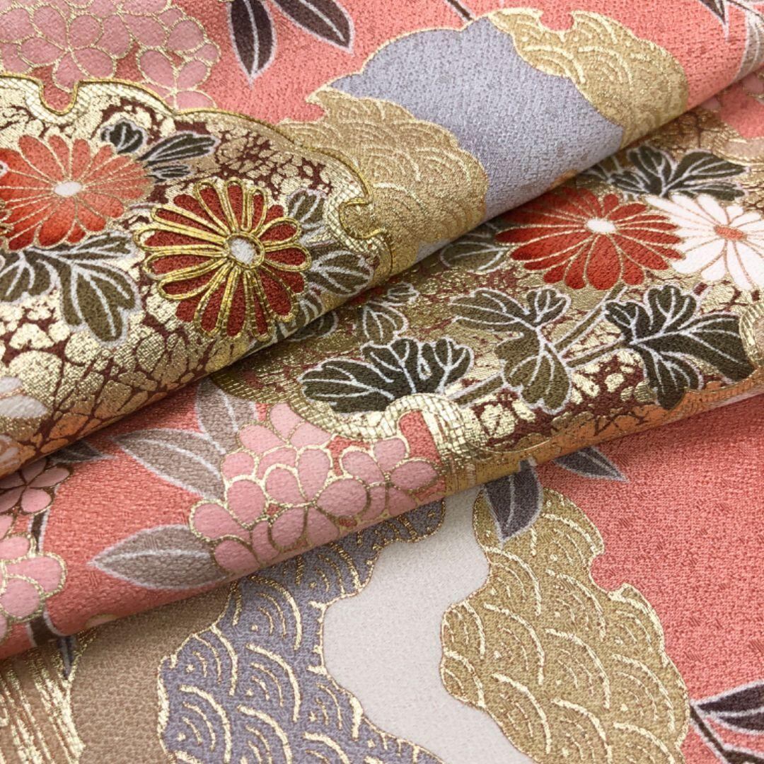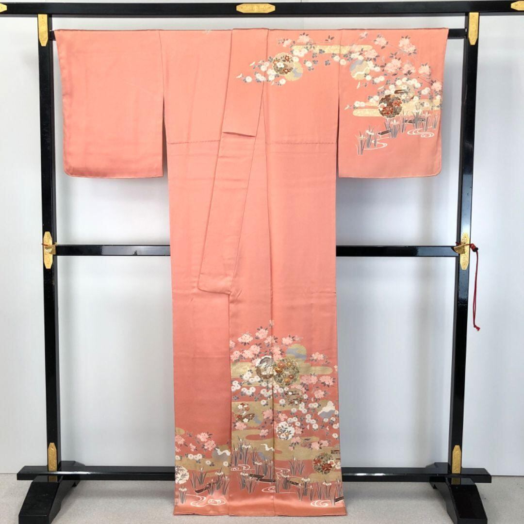 訪問着 四季の花模様 雪輪 金駒刺繍 金彩 東雲色 トールサイズ K-4953 着物 きもの kimono 和服 和装 中古 リサイクル着物 【送料無料】