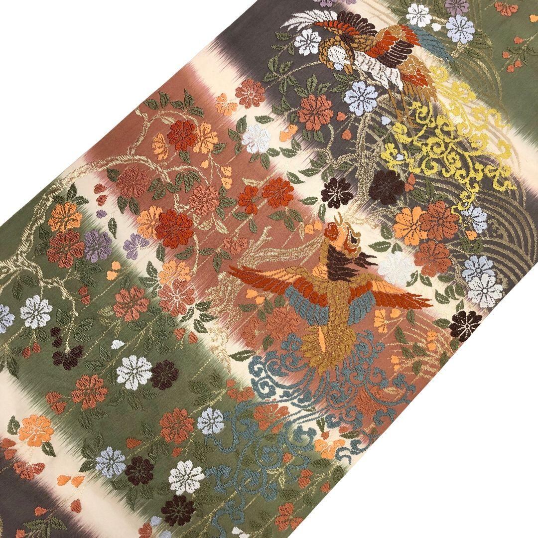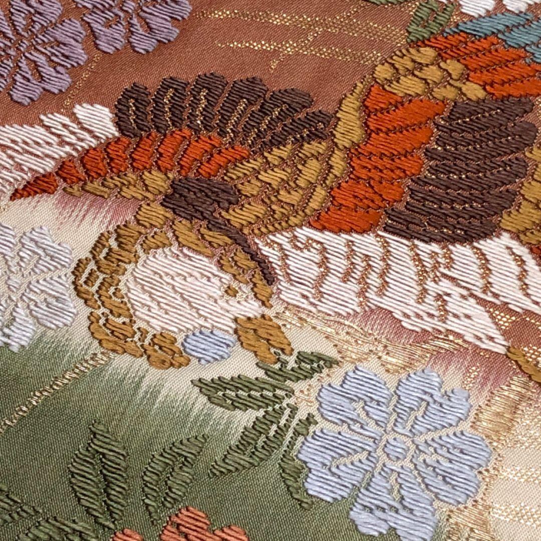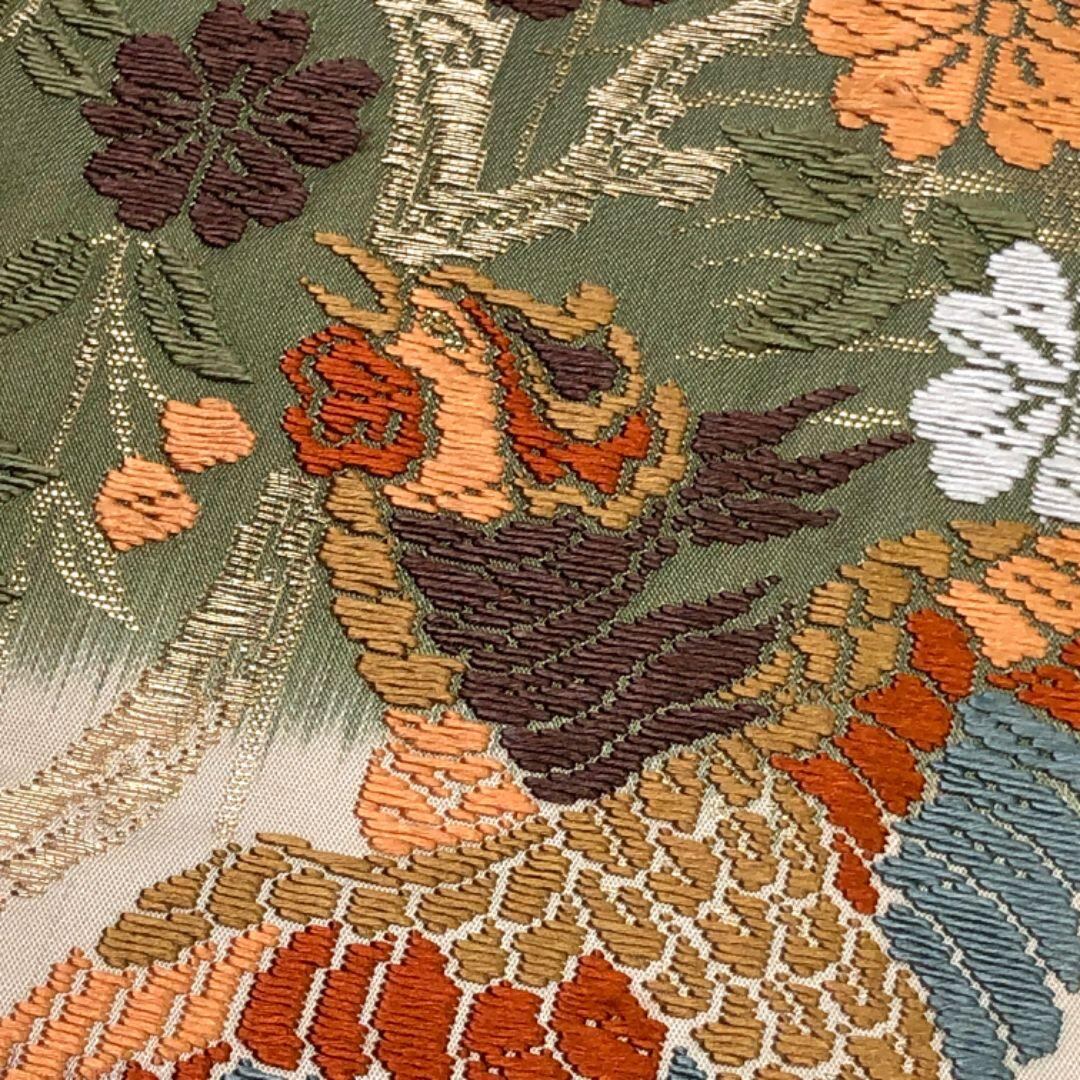 袋帯 唐織 花喰い鳥 花柄模様 金糸 O-5211 着物 きもの kimono 和服 和装 中古 リサイクル着物 【送料無料】