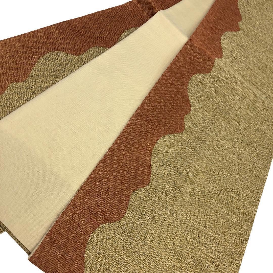 梨子色ベースの二色のお色味の縦柄曲線模様がデザインされた素敵なお品でございます。