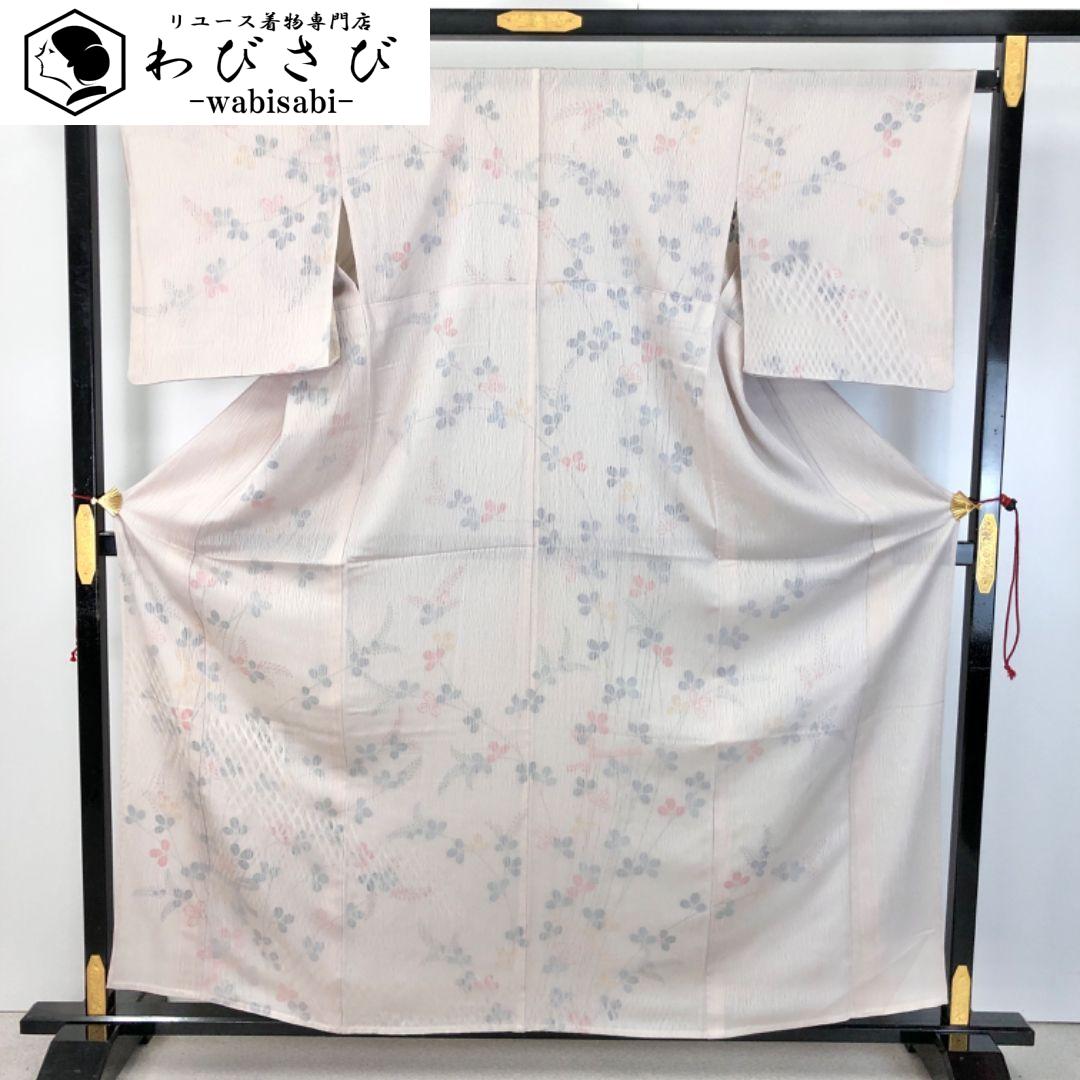単衣 紗合せ 小紋付下げ 青柳 重なった美しい織模様 萩 薄桜色 K-4926 着物 きもの kimono 和服 和装 中古 リサイクル着物 【送料無料】