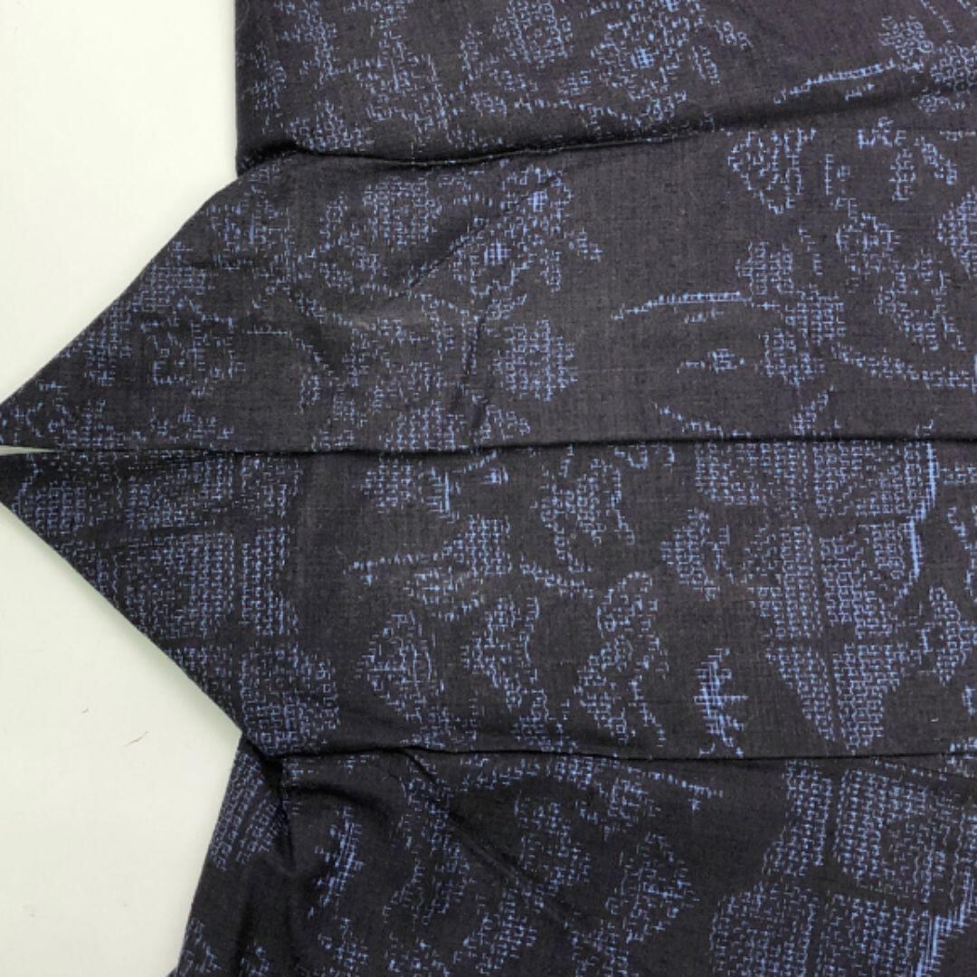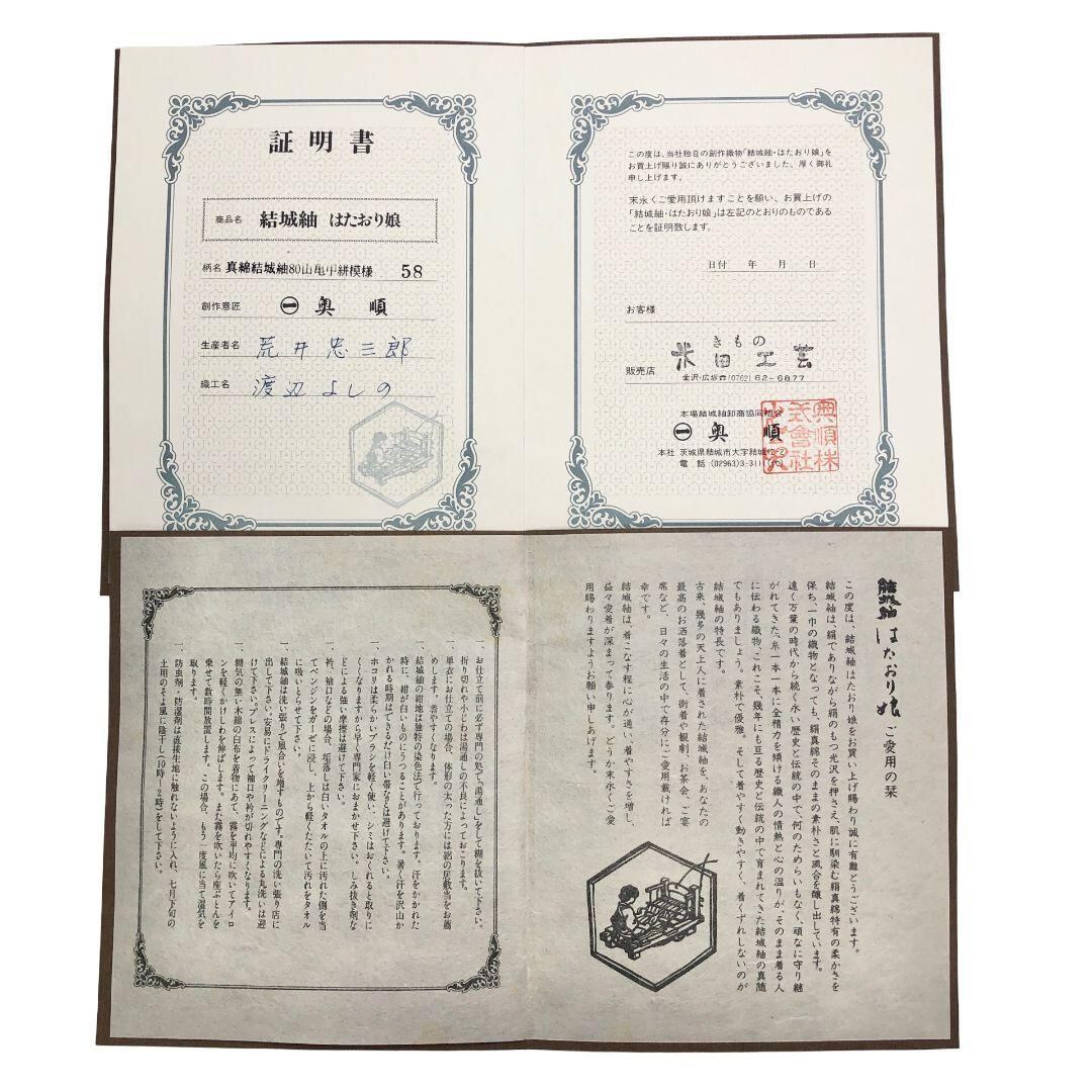 結城紬 奥順 証紙付 80亀甲 雲に花模様 藍色 ガード加工 K-4943 着物 きもの kimono 和服 和装 中古 リサイクル着物 【送料無料】