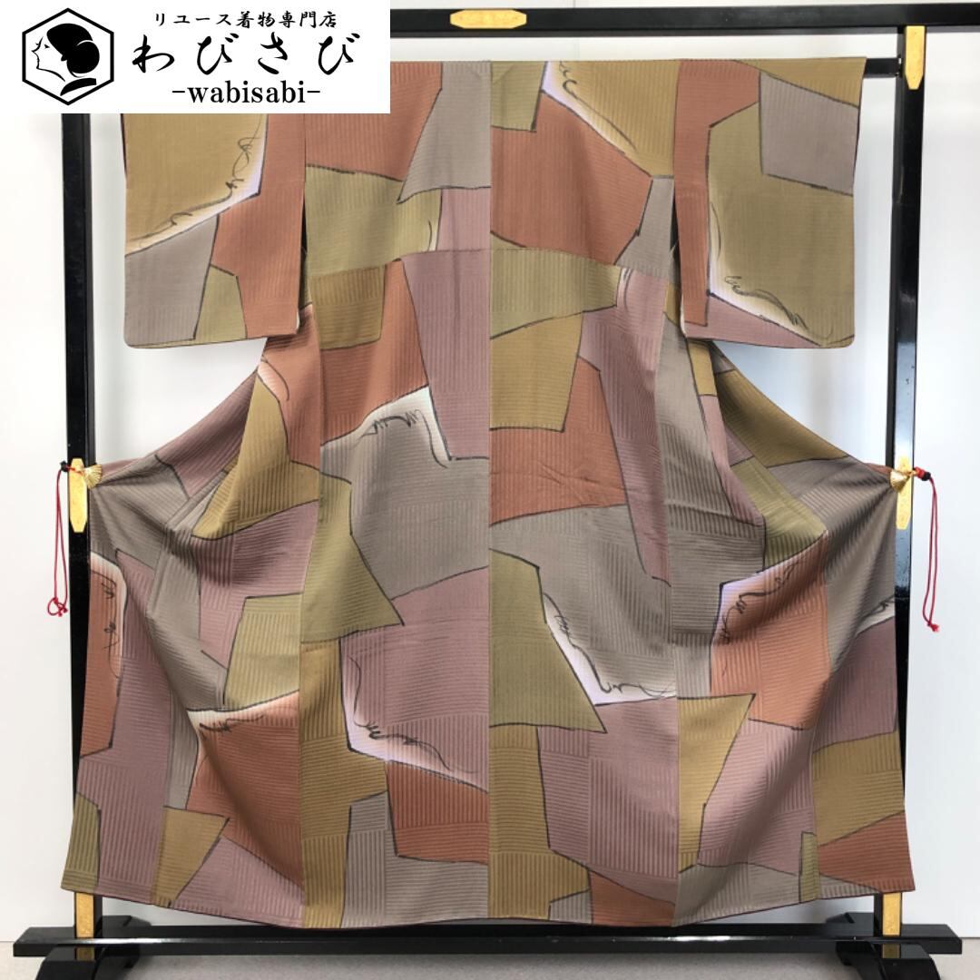 小紋 美しい染柄模様 縮緬 ふくよかサイズ ガード加工 K-4952 着物 きもの kimono 和服 和装 中古 リサイクル着物 【送料無料】