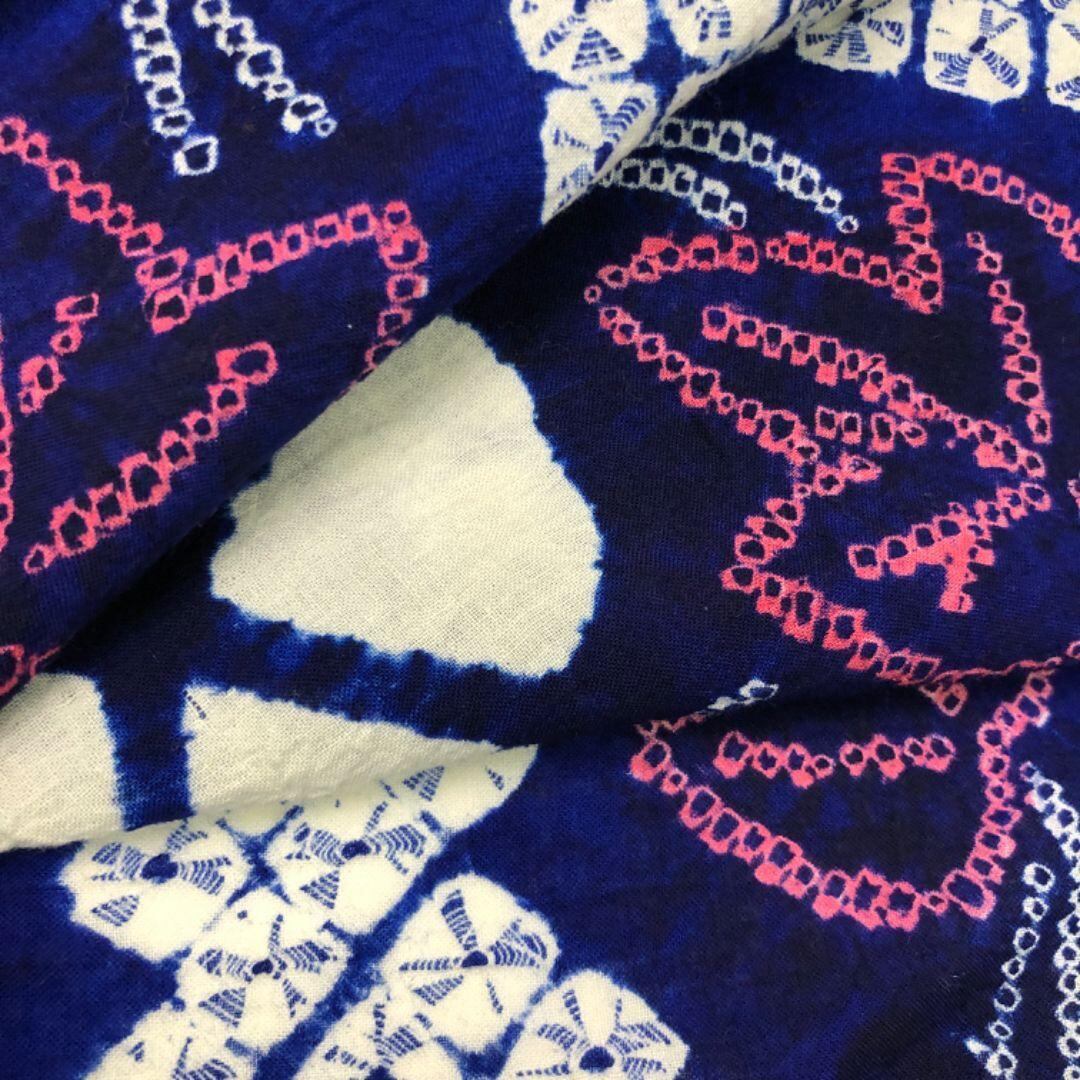 濃桔梗色のお色味に朝顔の柄裄がデザインされた素敵なお品でございます。