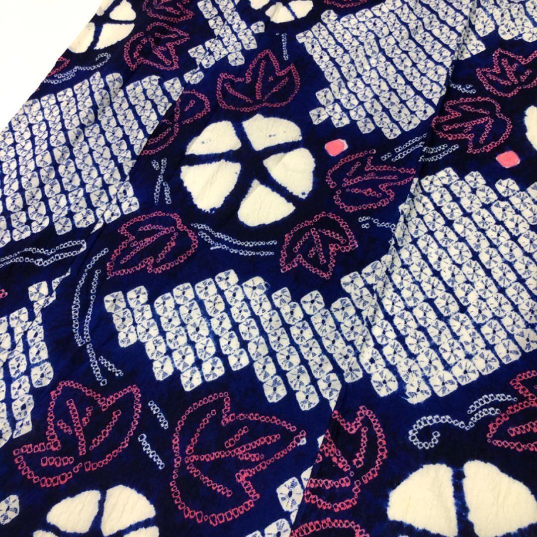 夏着物 浴衣 有松鳴海本絞り 朝顔 濃桔梗色 K-4973 着物 きもの kimono 和服 和装 中古 リサイクル着物 【送料無料】