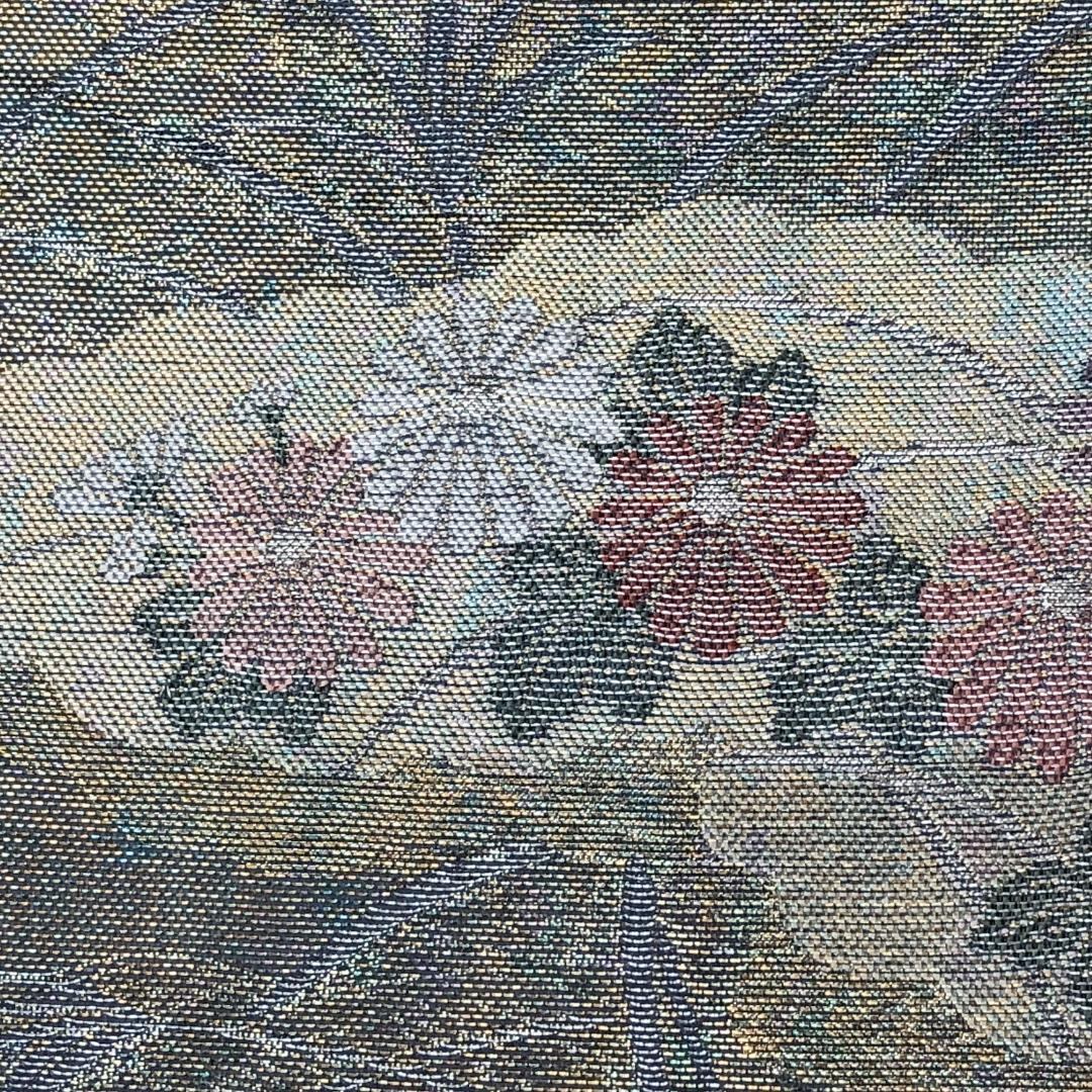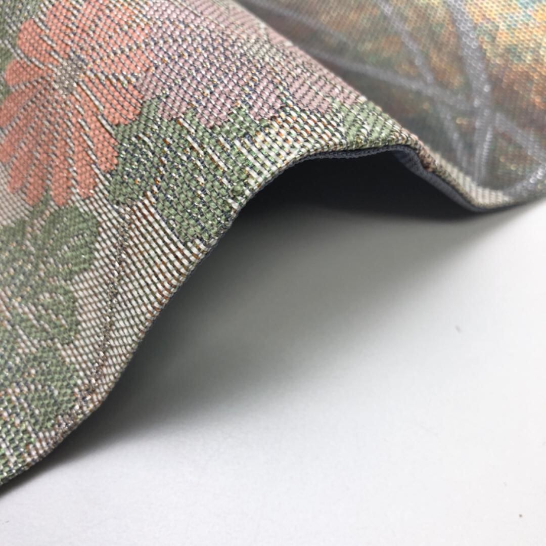 金銀糸が使われた落ち着いたお色味に雲取りに花模様がデザインされた雰囲気の良い素敵なお品でございます。