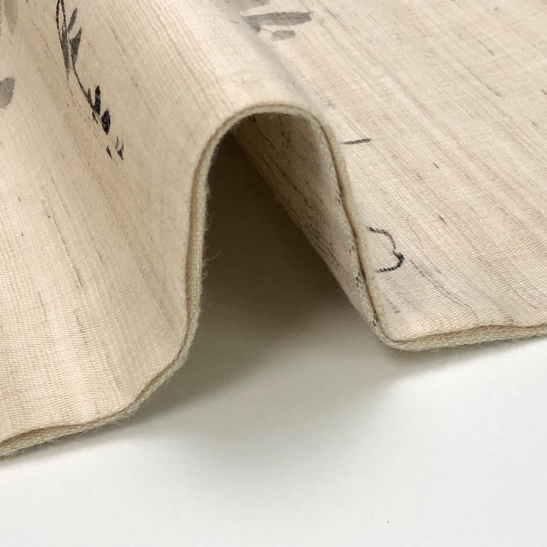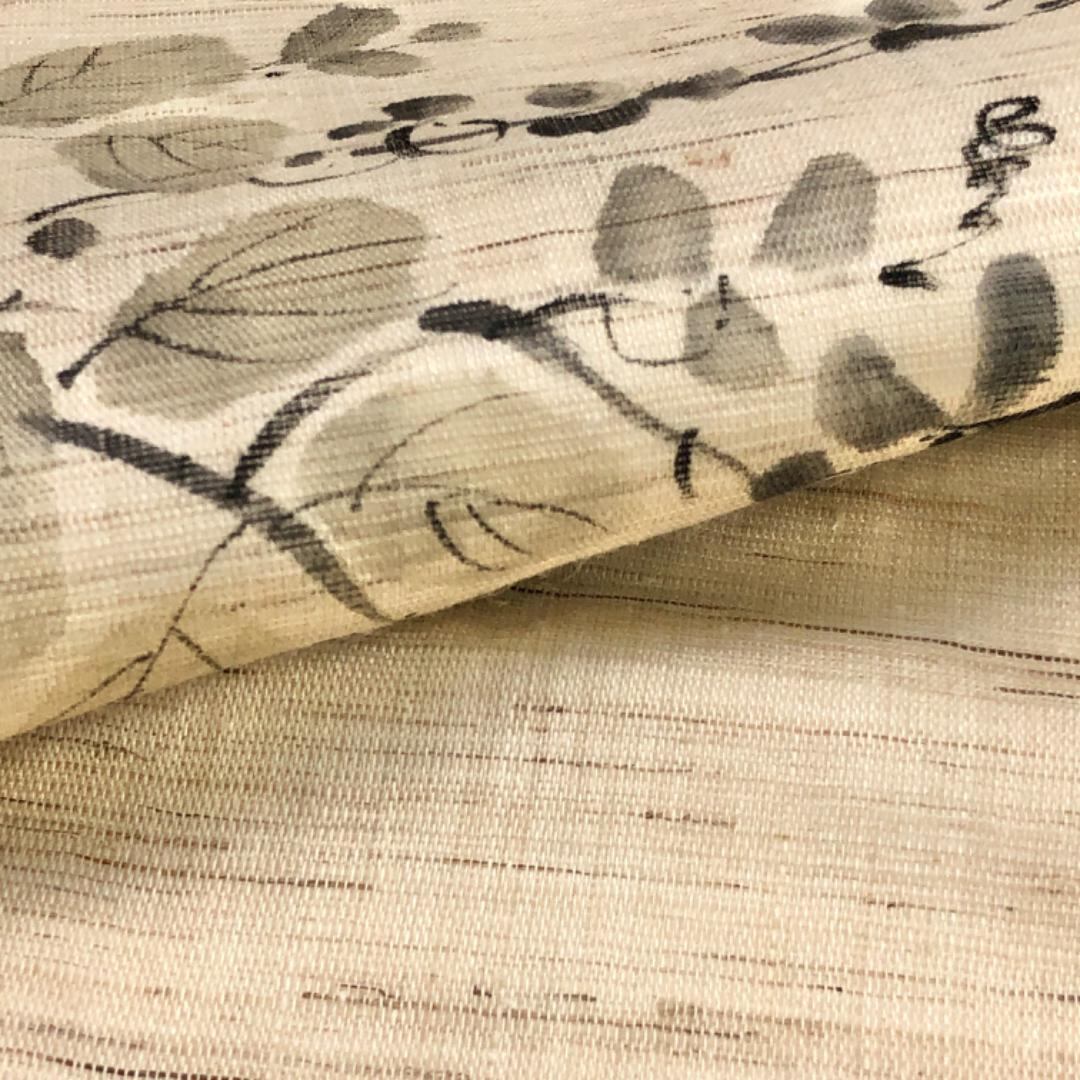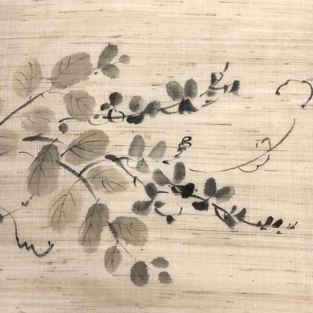 尾花色の自然な風合いのお色味に墨の手描きの蔓葉模様がデザインされた雰囲気の良い素敵な柄裄のお品でございます。