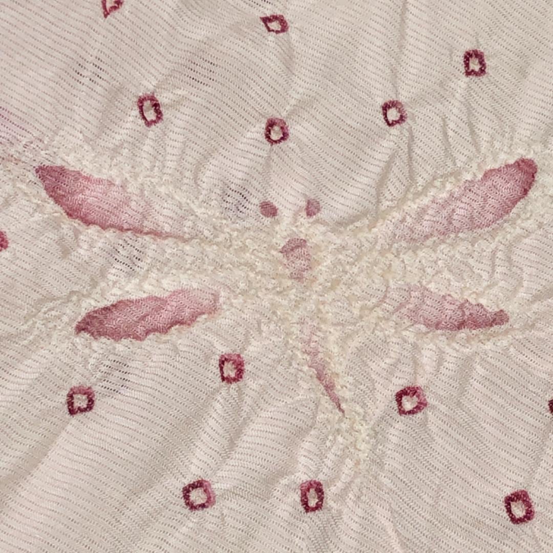 乙女色のお色味に可愛らしい蜻蛉の柄裄がデザインされた素敵なお品でございます。