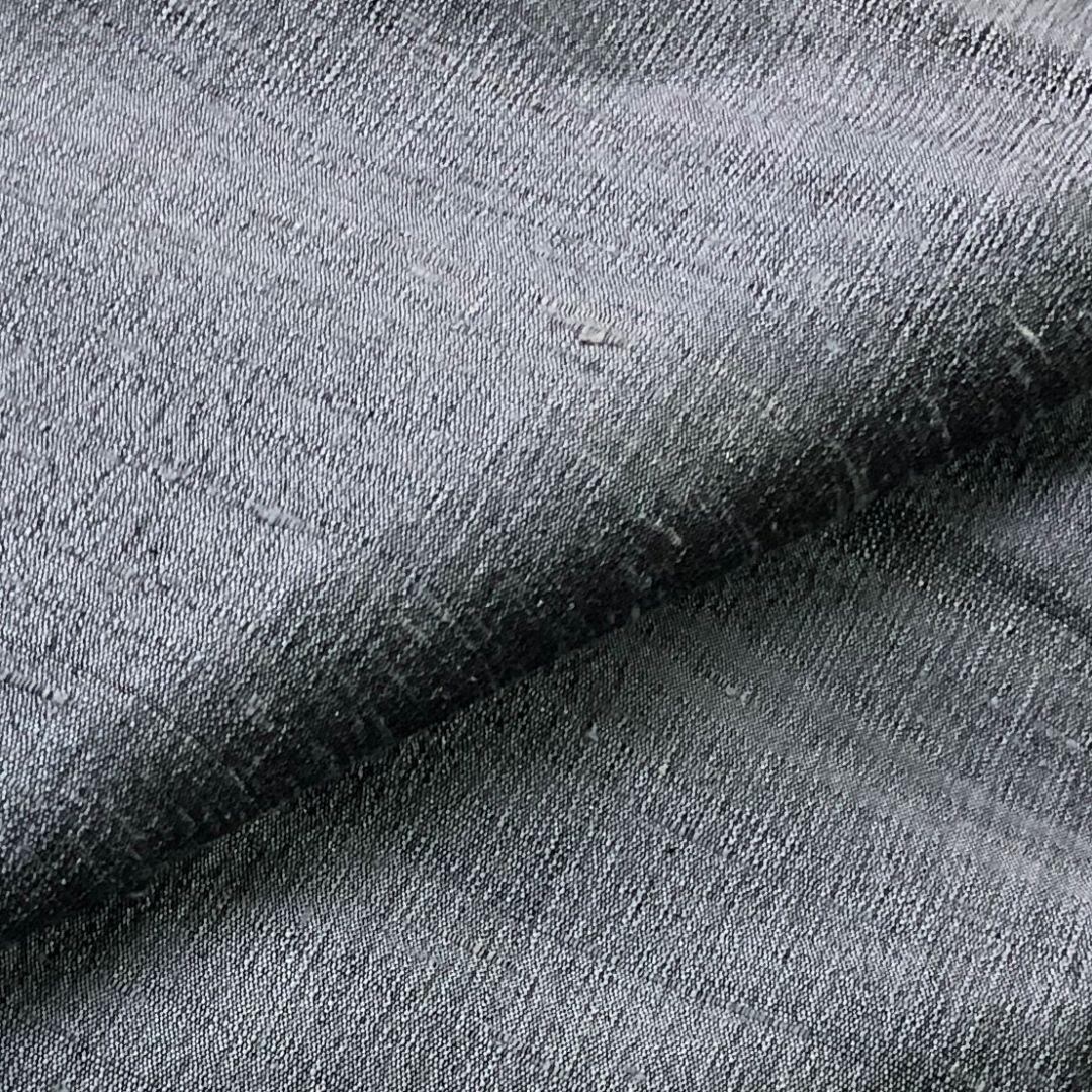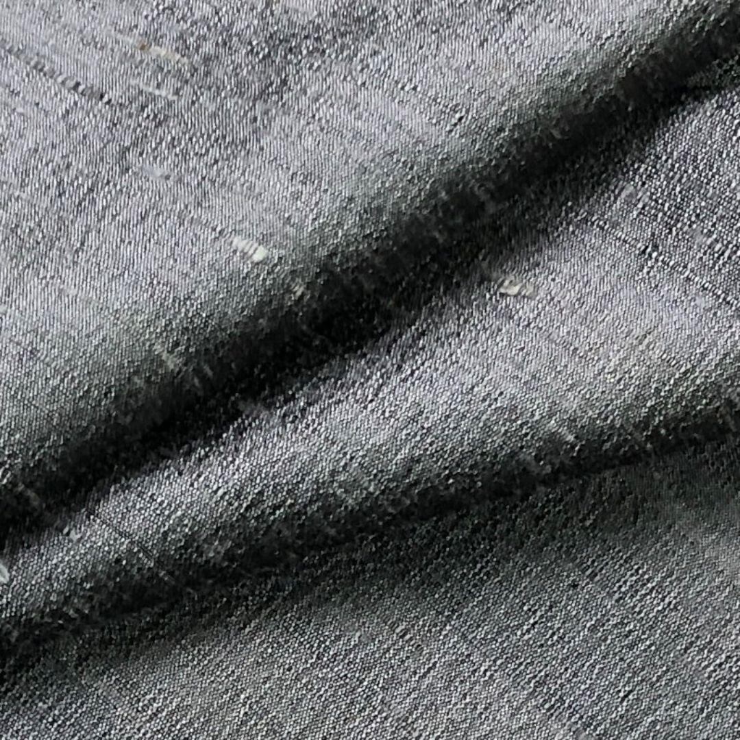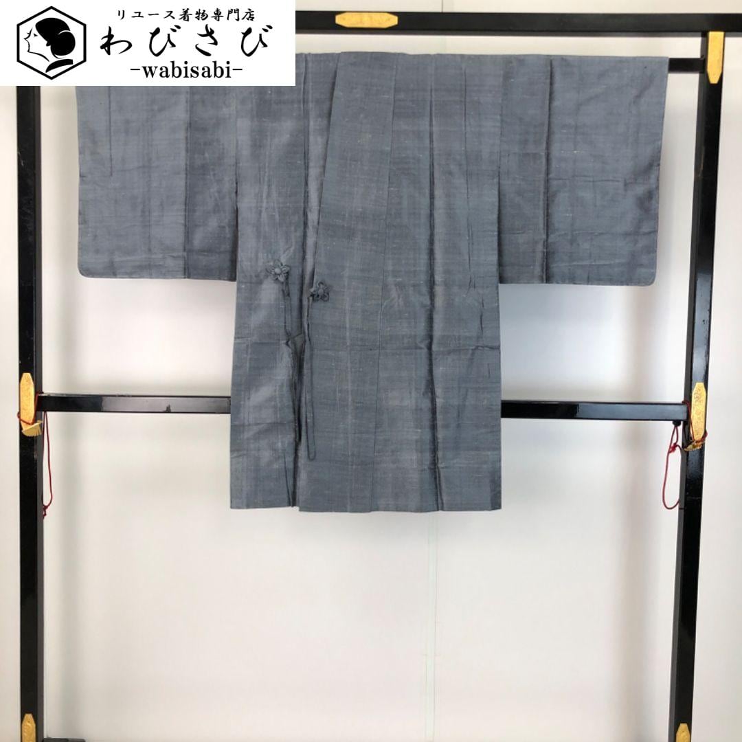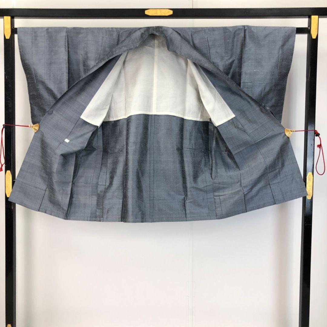 薄鈍色の落ち着きのあるお色の紬地の無地の雰囲気の良い素敵なお品でございます。