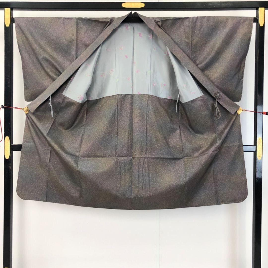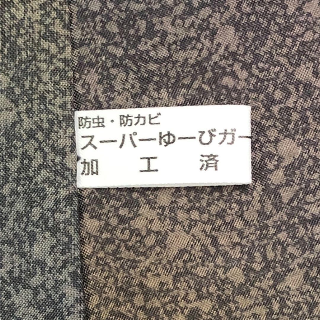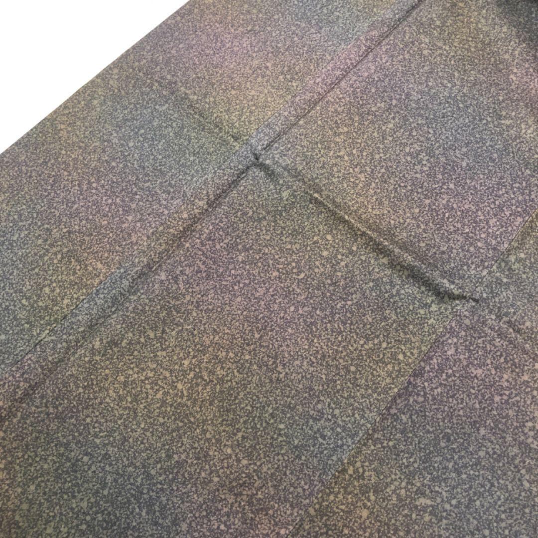 燻銀色ベースのお色味に叩き染でデザインされた雰囲気の良い染大島の素敵なお品でございます。