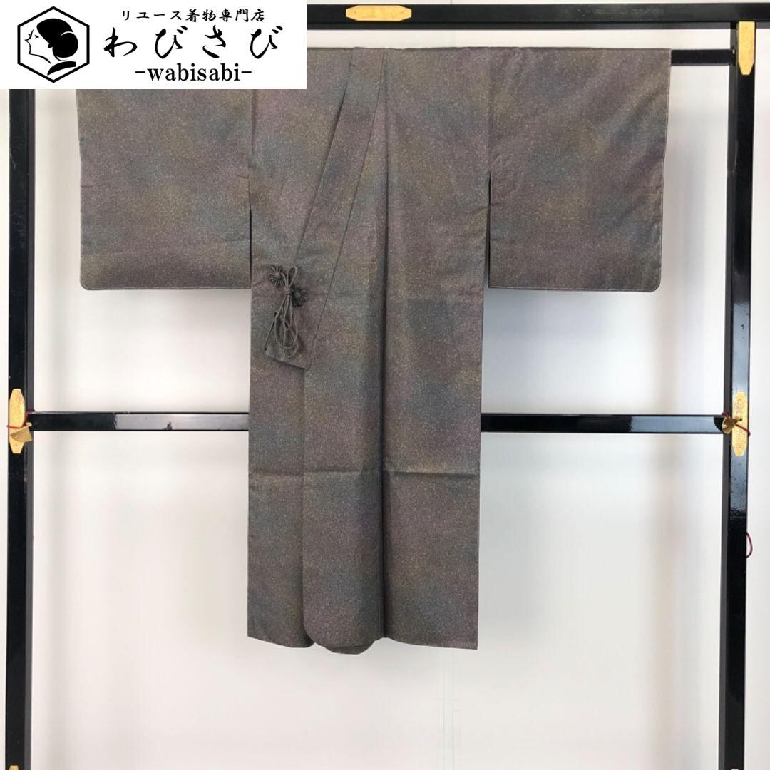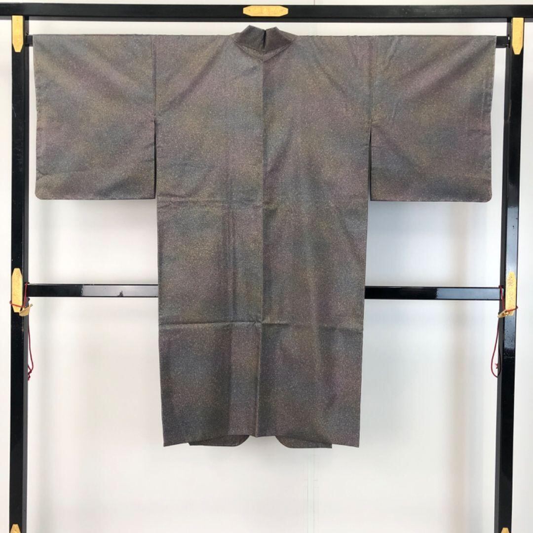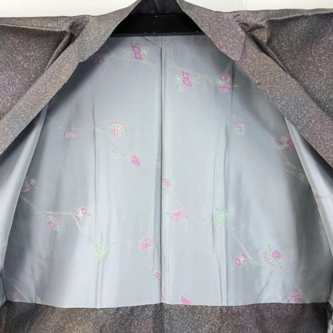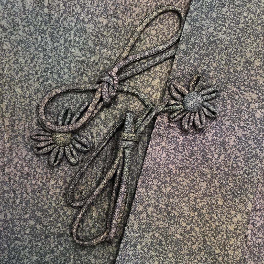 燻銀色ベースのお色味に叩き染でデザインされた雰囲気の良い染大島の素敵なお品でございます。