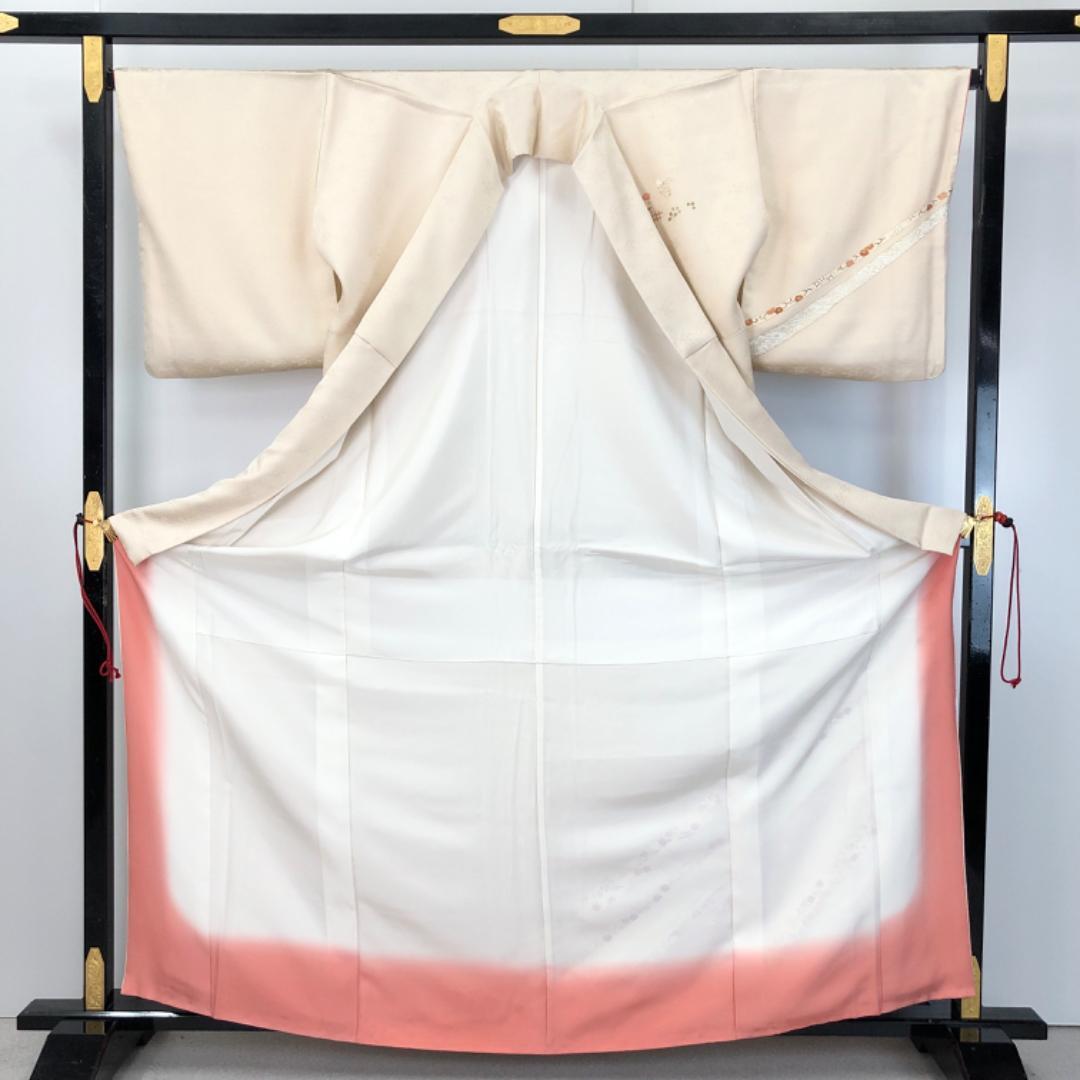 付下げ 斜め花柄模様 先練五枚朱子 伊と幸 金彩 膚色 K-4950 着物 きもの kimono 和服 和装 中古 リサイクル着物 【送料無料】