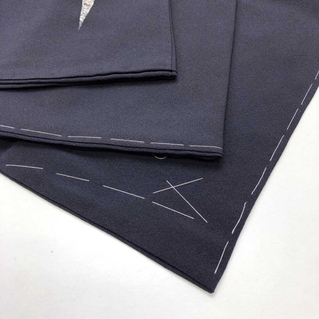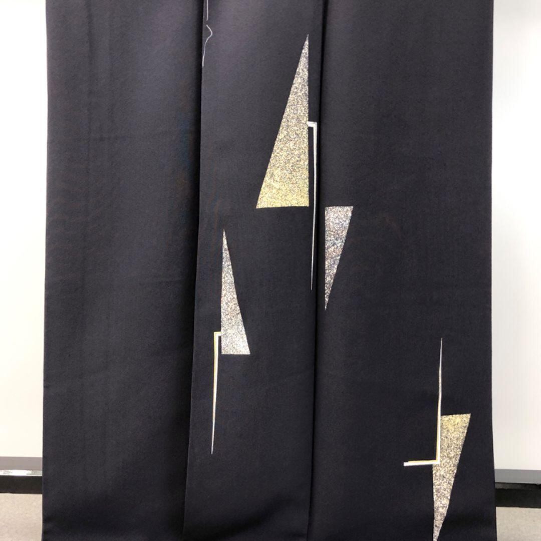 付下げ モダンな三角模様 金銀彩 藤煤竹色 縮緬 しつけ糸 K-4937 着物 きもの kimono 和服 和装 中古 リサイクル着物 【送料無料】