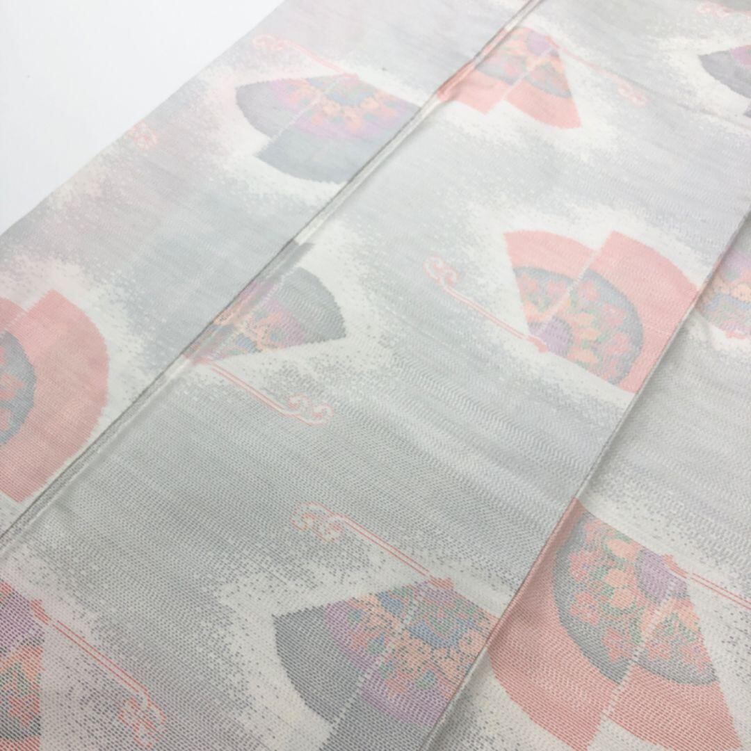 胡粉色の上品なお色味に扇子に花模様の柄裄がデザインされた素敵なお品でございます。