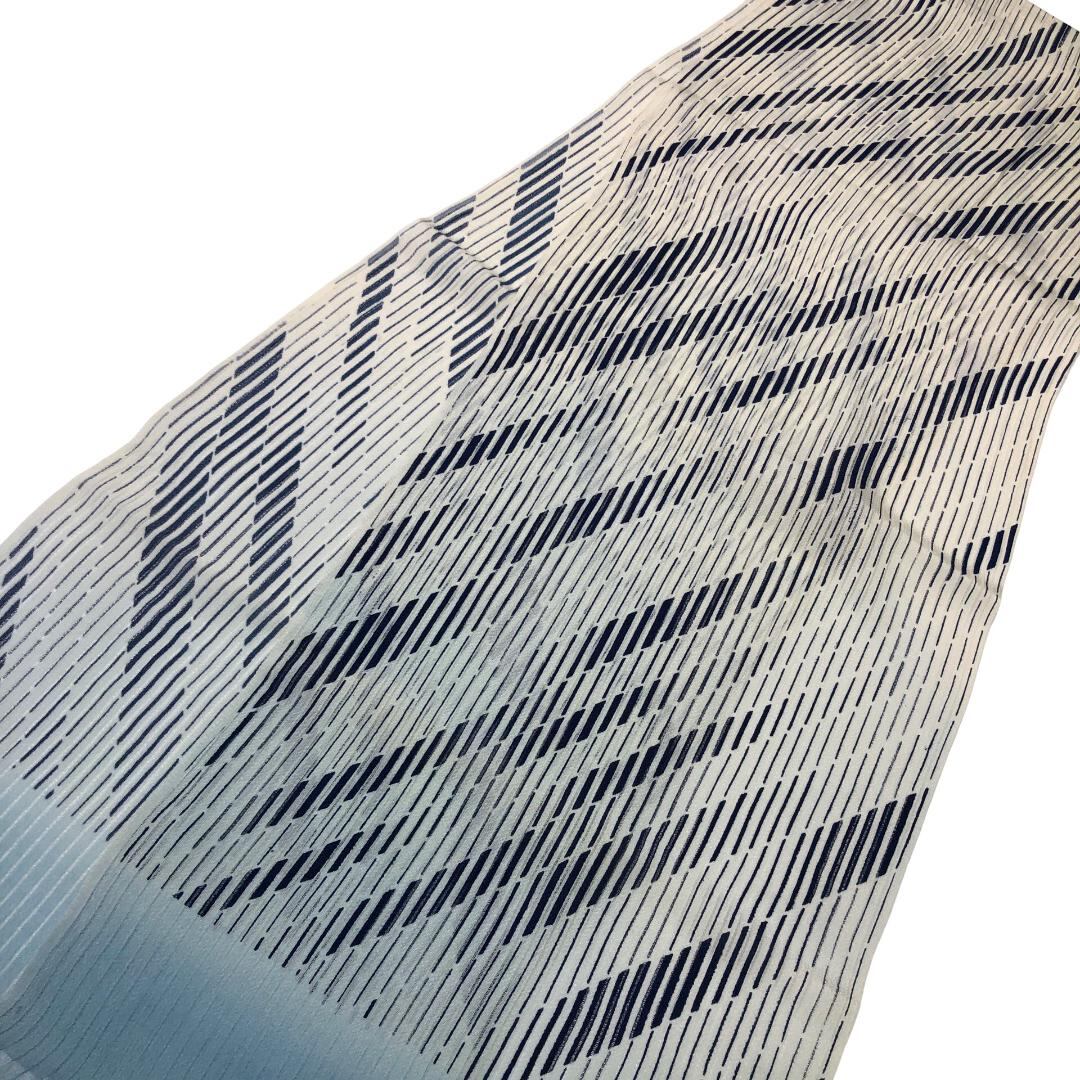 薄秘色のお色味に抽象斜め模様の柄裄がデザインされた素敵なお品でございます。