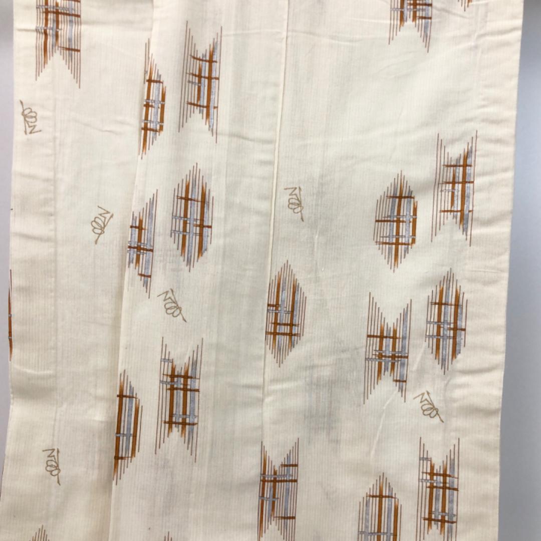 利休白茶色のお色味に抽象模様の柄裄がデザインされた素敵なお品でございます。
