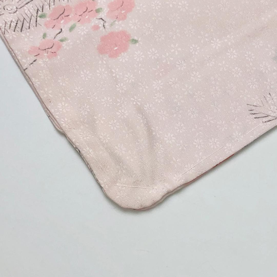 薄桃色の優しいお色味に手描きの花模様、小花の地模様の柄裄がデザインされた素敵なお品でございます。