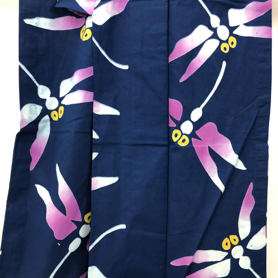 藍色のお色味に蜻蛉の柄裄がデザインされた素敵なお品でございます。